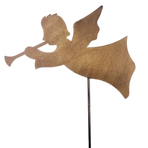 Aniołek Gabriel z trąbką na pręcie - duży efekt złotej rdzy