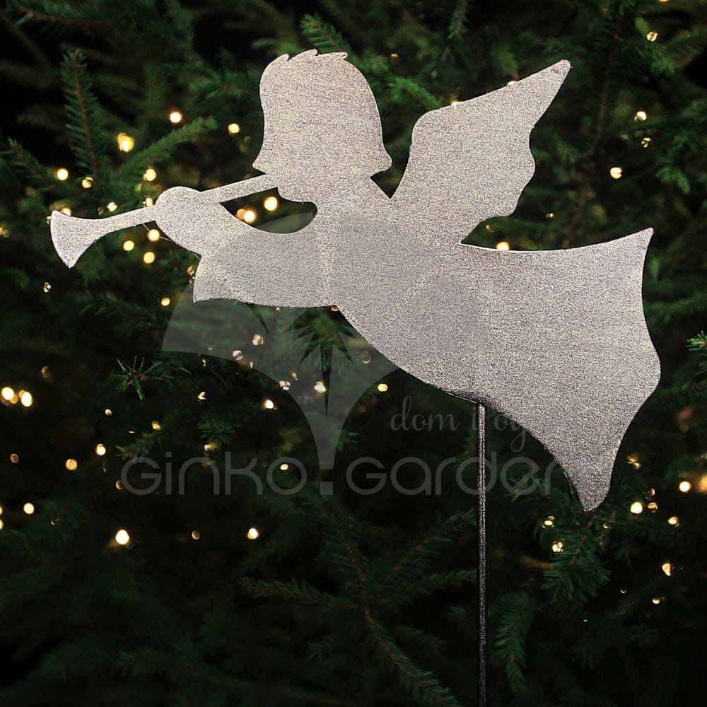 Nasz metalowy aniołek Gabriel z trąbką na pręcie to oryginalny pomysł na uzupełnienie Twojej kolekcji biżuterii ogrodowej w okresie zimowym. Świetnie odnajdzie się w ogrodzie lub na tarasie. Precyzyjnie wycięty element w sposób gustowny doda Twojej przestrzeni wyjątkowej świątecznej atmosfery. Z pomocą naszych produktów idealnie udekorujesz swoją okolicę na czas Bożego Narodzenia!