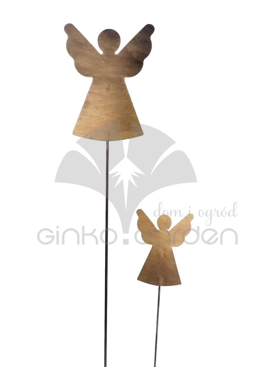 Metalowy aniołek na pręcie o barwie złotej rdzy - zimowa biżuteria ogrodowa