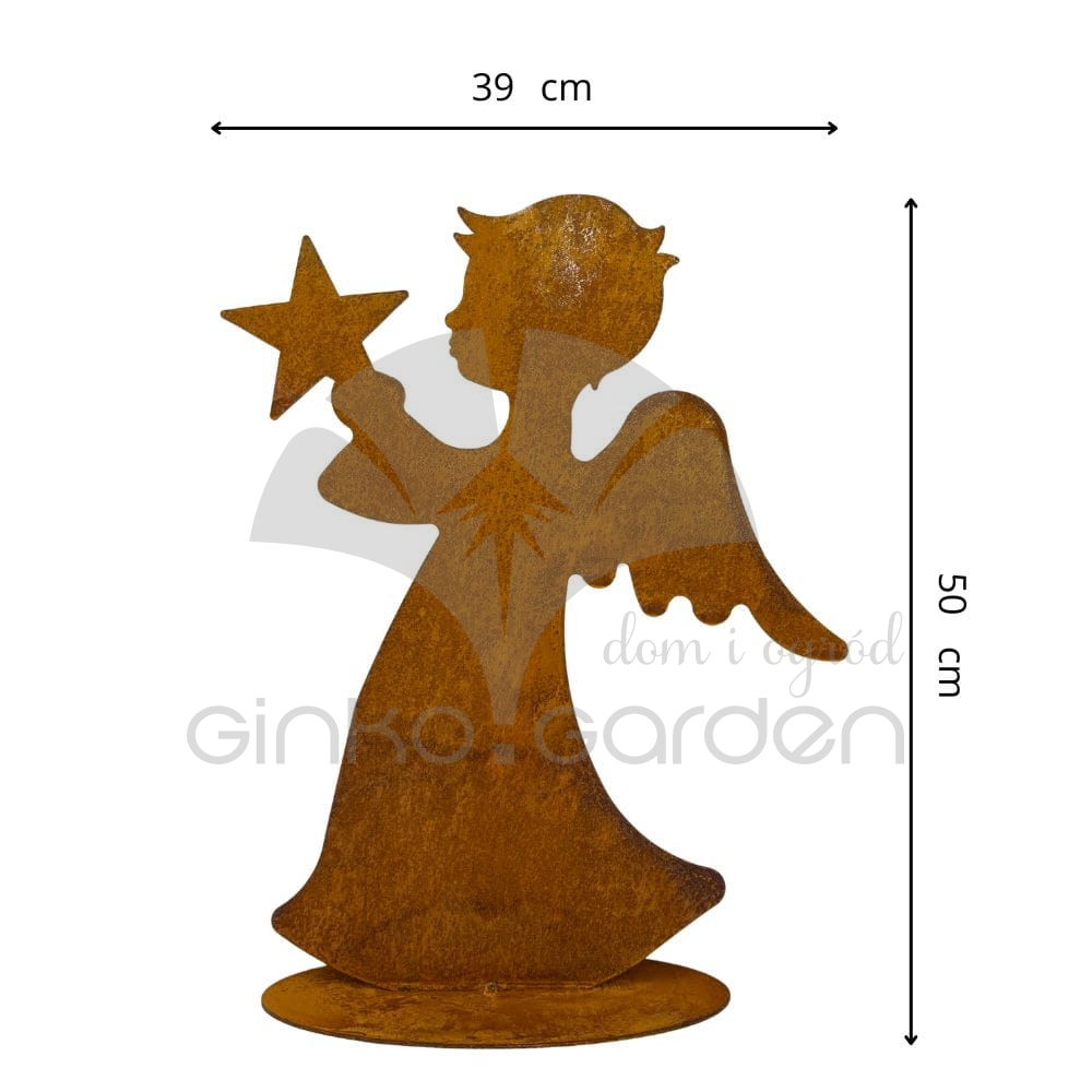 Metalowa figurka do ogrodu Aniołek z gwiazdką - ozdoba świąteczna - rdza