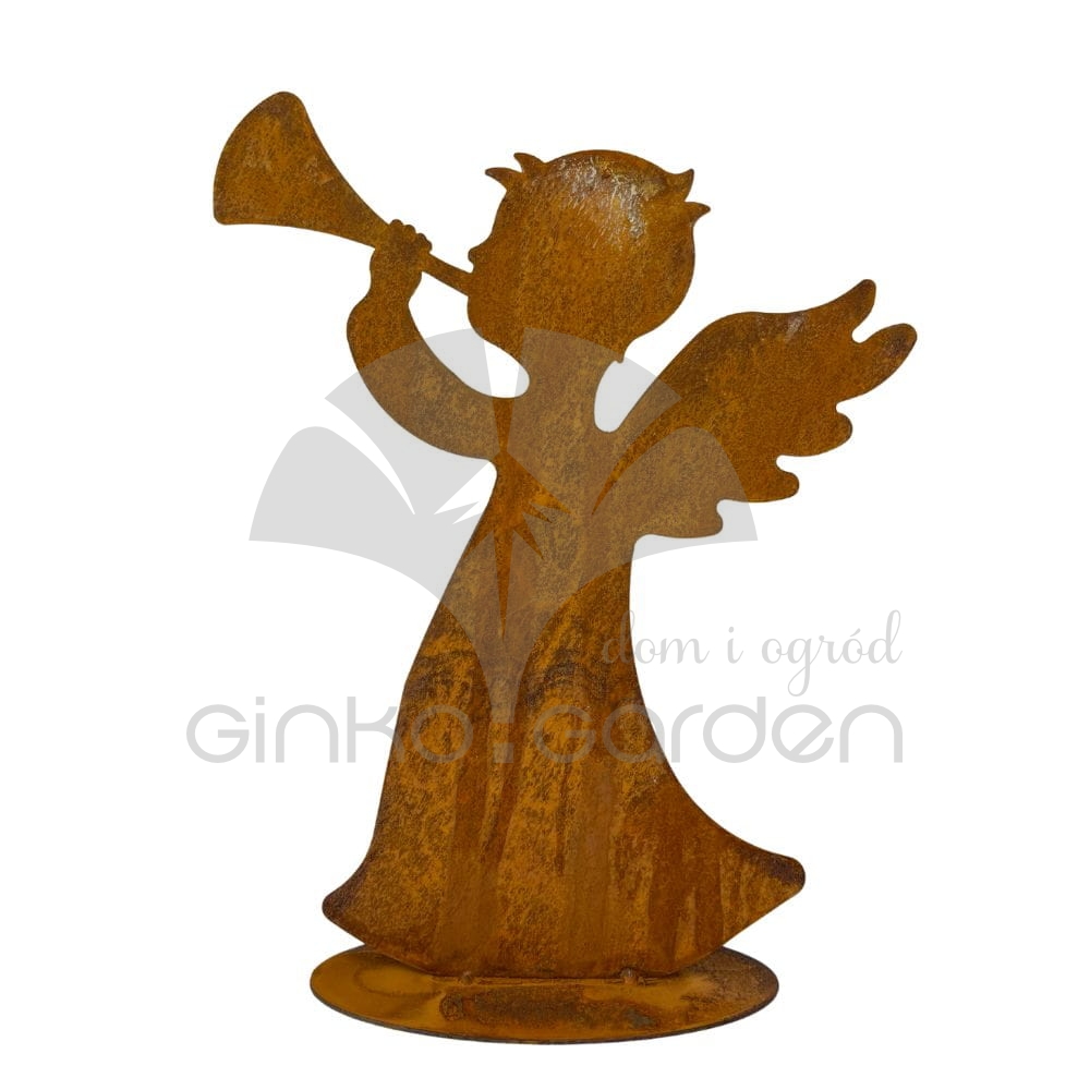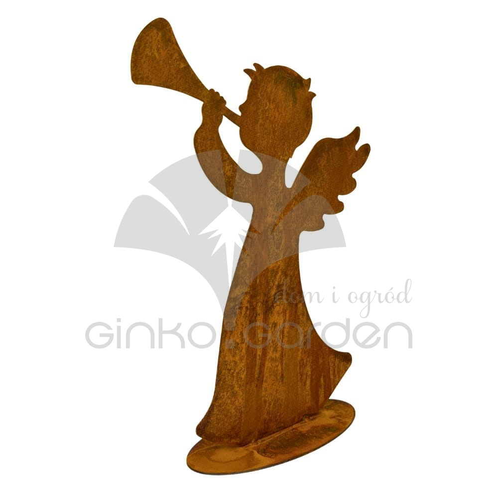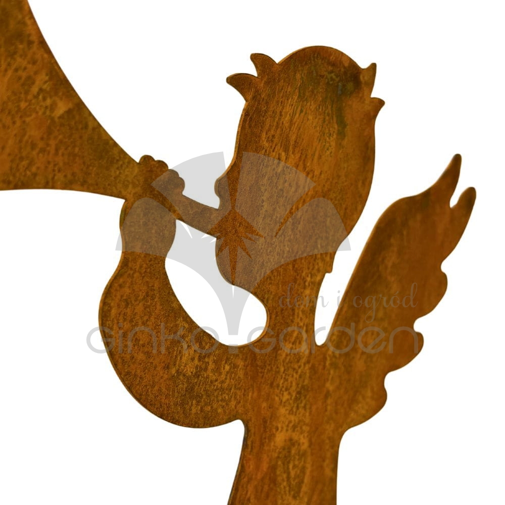 Metalowa figurka do ogrodu Aniołek z trąbką - ozdoba świąteczna - rdza