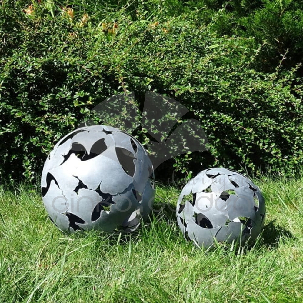 Metalowa kula ogrodowa z liści miłorzębu | antracyt