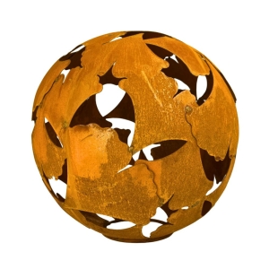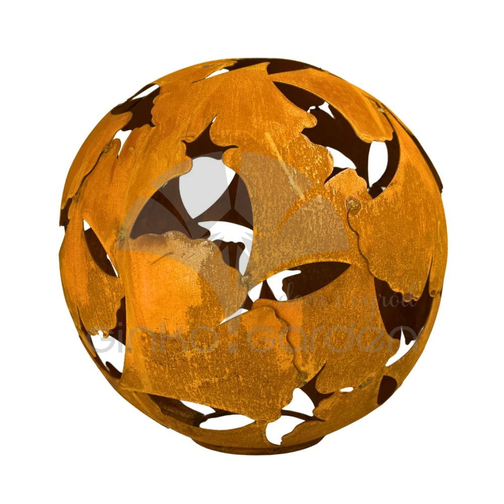 Metalowa kula ogrodowa z liści miłorzębu | naturalna rdza
