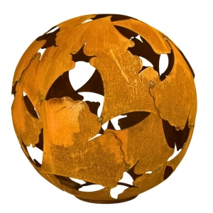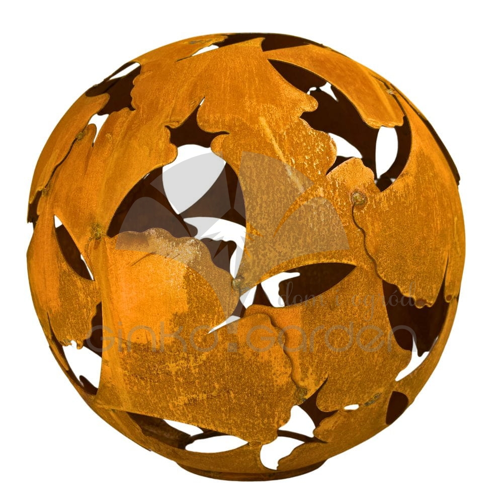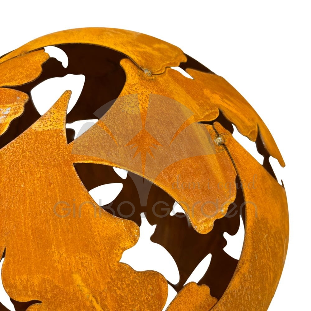 Metalowa kula ogrodowa z liści miłorzębu | naturalna rdza