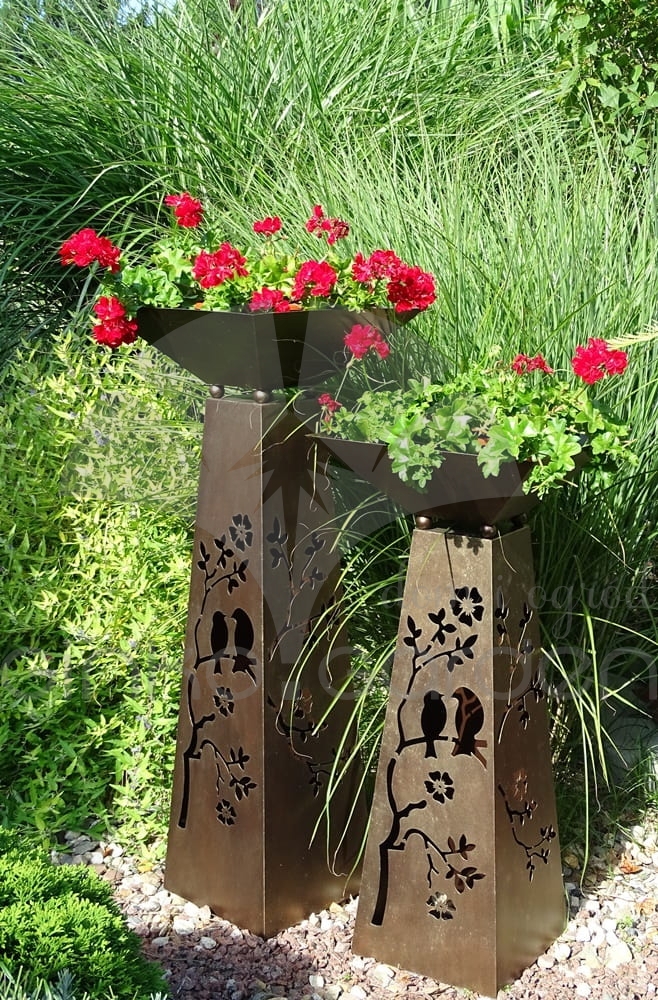 Metalowy lampion ogrodowy - dekoracyjny podest do obsadzenia