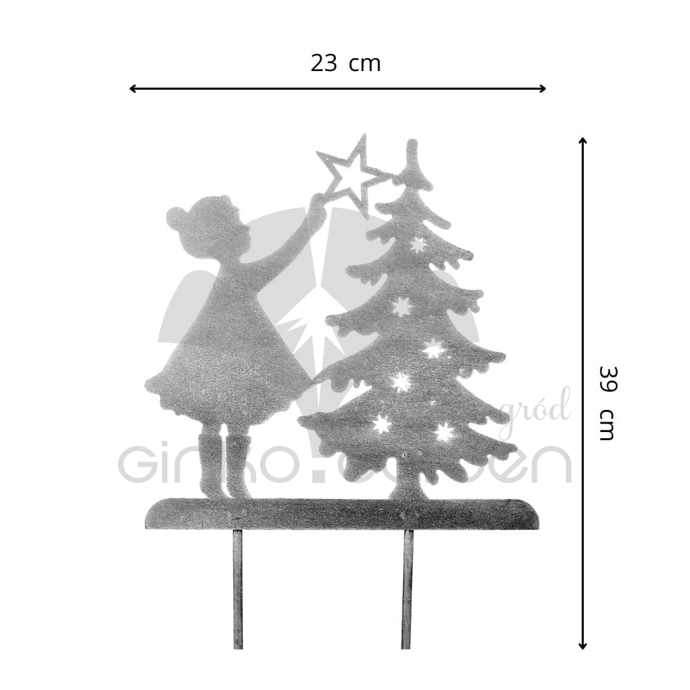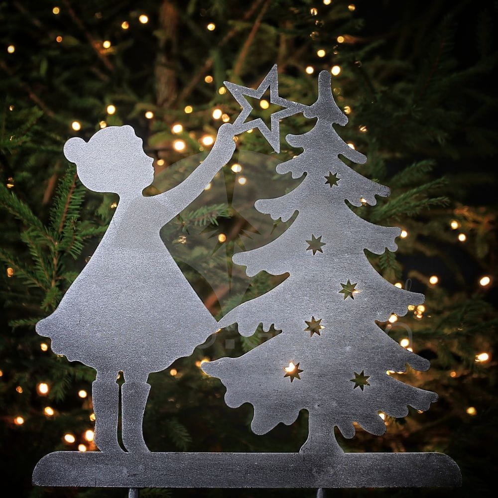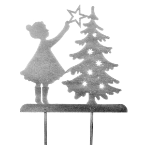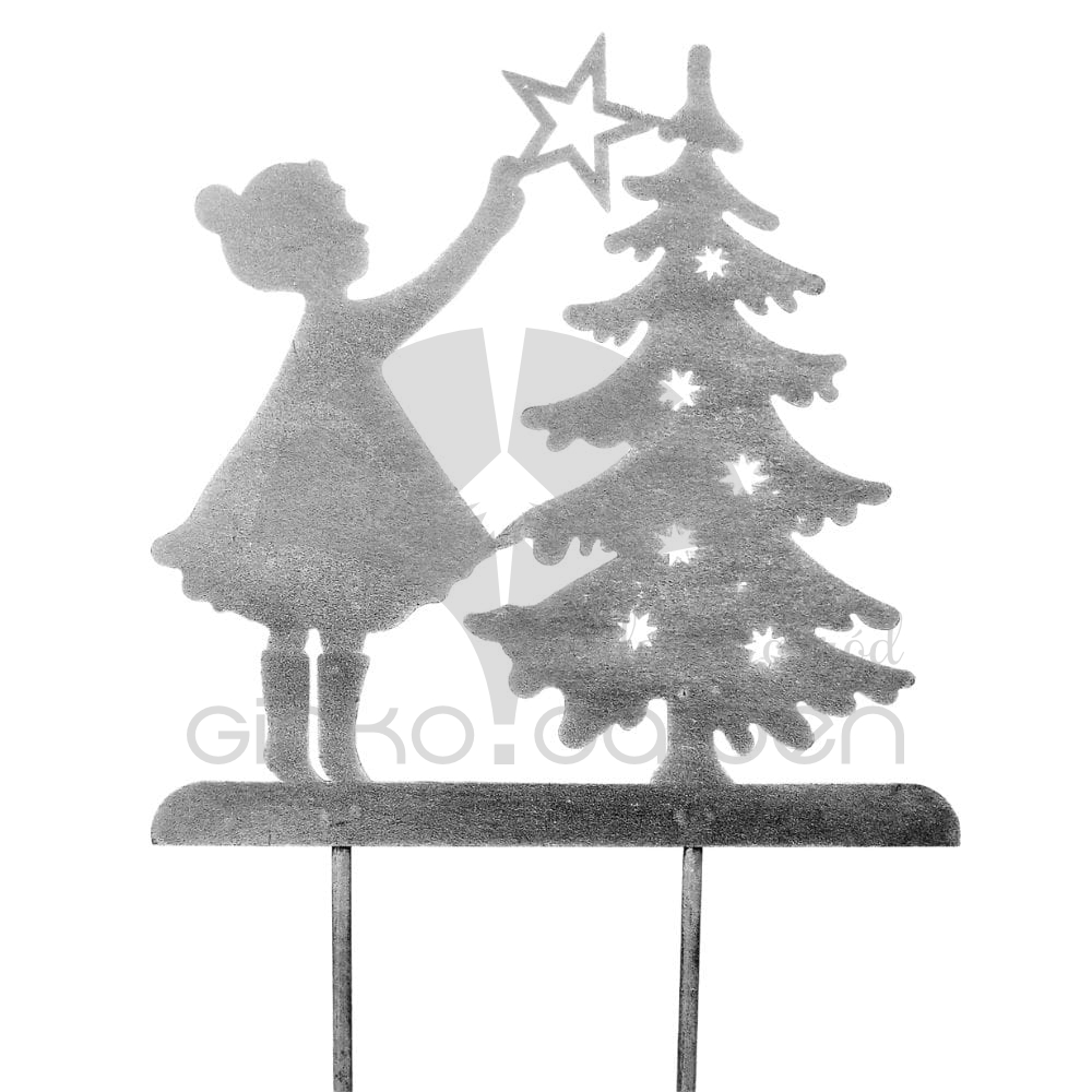 Nasza metalowa dziewczynka z choinką na prętach to oryginalny pomysł na uzupełnienie Twojej kolekcji biżuterii ogrodowej w okresie zimowym. Świetnie odnajdzie się w ogrodzie lub na tarasie. Precyzyjnie wycięty element w sposób gustowny doda Twojej przestrzeni wyjątkowej świątecznej atmosfery. Z pomocą naszych produktów idealnie udekorujesz swoją okolicę na czas Bożego Narodzenia!