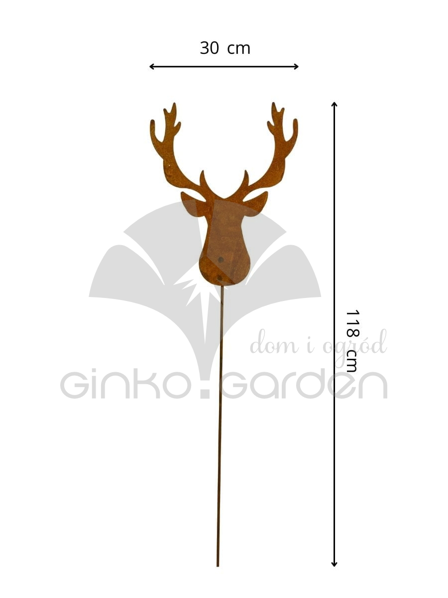 Wprowadź leśną atmosferę do swojego ogrodu z tą minimalistyczną dekoracją w kształcie głowy jelonka z majestatycznym porożem. Wykonana z metalu i pokryta naturalną rdzawą patyną, ozdoba zachwyca surowym urokiem i wpisuje się w modny, rustykalny styl. Dzięki osadzeniu na długim, stabilnym pręcie, dekorację możesz w łatwy sposób umieścić w ziemi, donicy lub skrzynce balkonowej. Idealnie sprawdzi się jako bożonarodzeniowy akcent w ogrodzie, na tarasie lub przy wejściu do domu – solo lub w towarzystwie innych dekoracji świątecznych. Metalowa głowa jelenia to elegancka, a zarazem prosta ozdoba sezonowa, która przyciąga wzrok i tworzy wyjątkowy klimat zimowego lasu. Doskonała dla miłośników natury, ekologicznych trendów i rękodzieła.