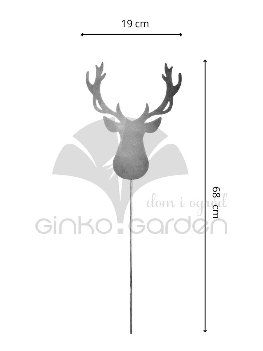 Metalowa Głowa jelonka na pręcie o barwie antracytowej - zimowa biżuteria ogrodowa