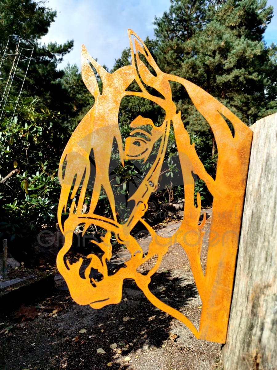 Głowa Konia do przykręcenia - nowoczesna i zabawna figurka ogrodowa w kolorze naturalnej rdzy.
