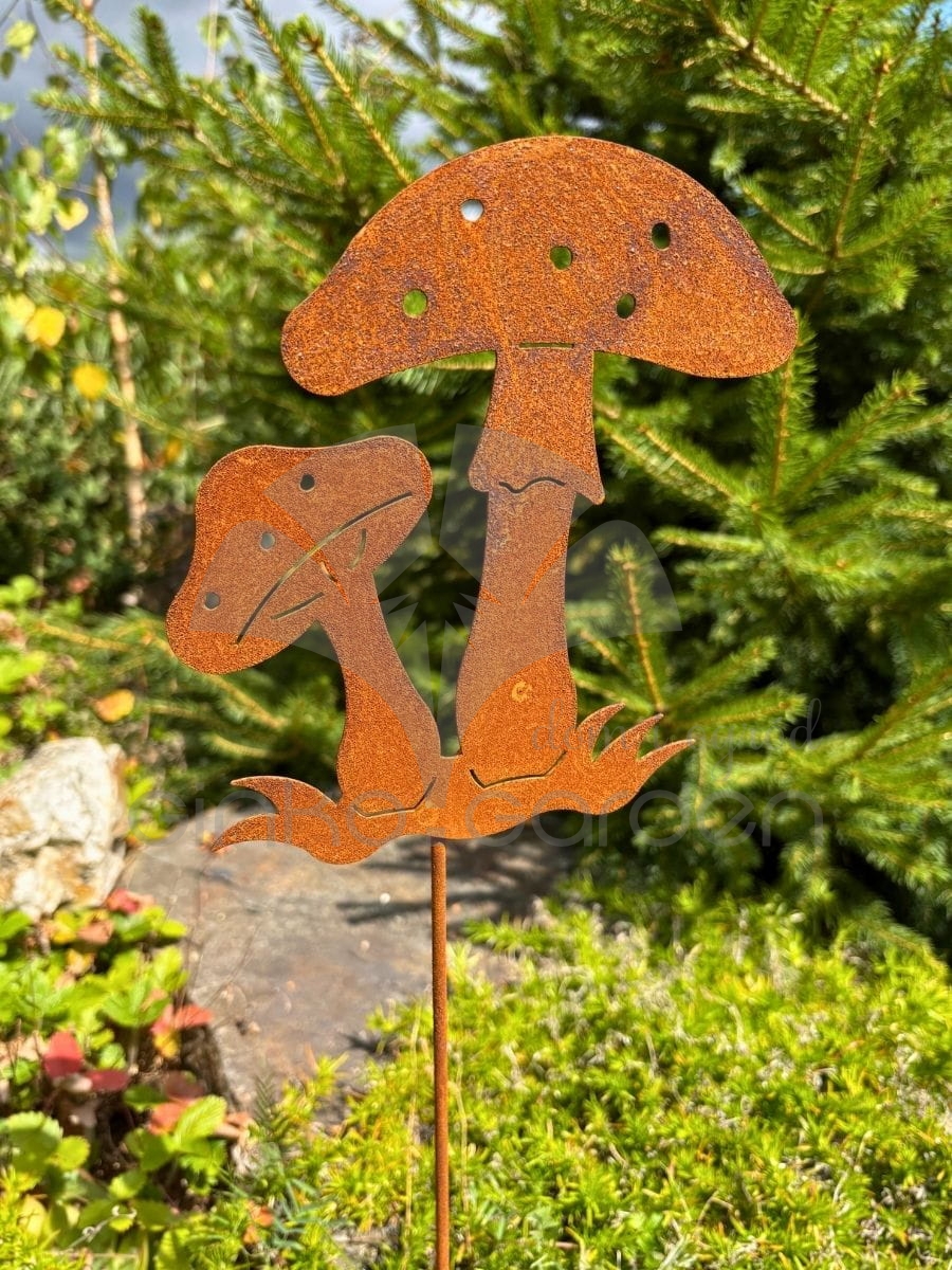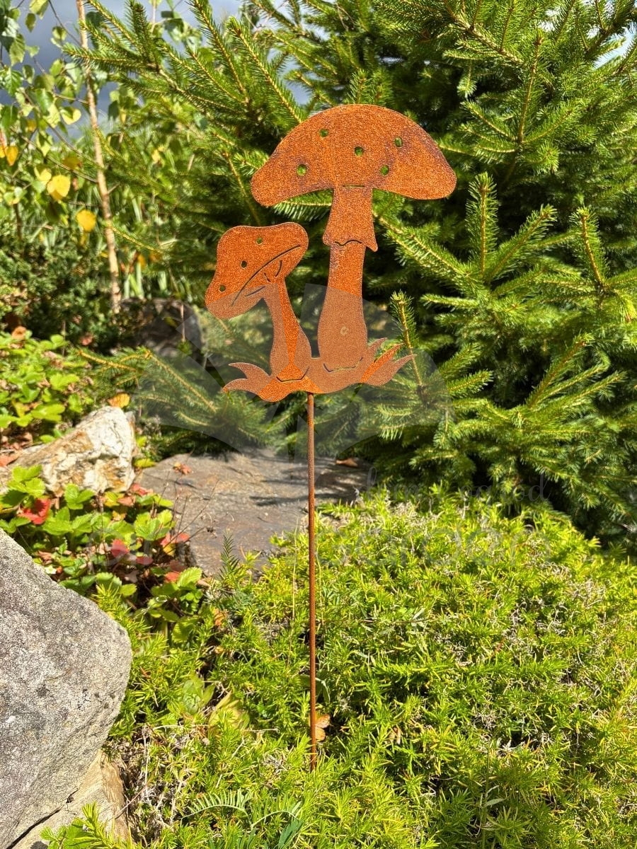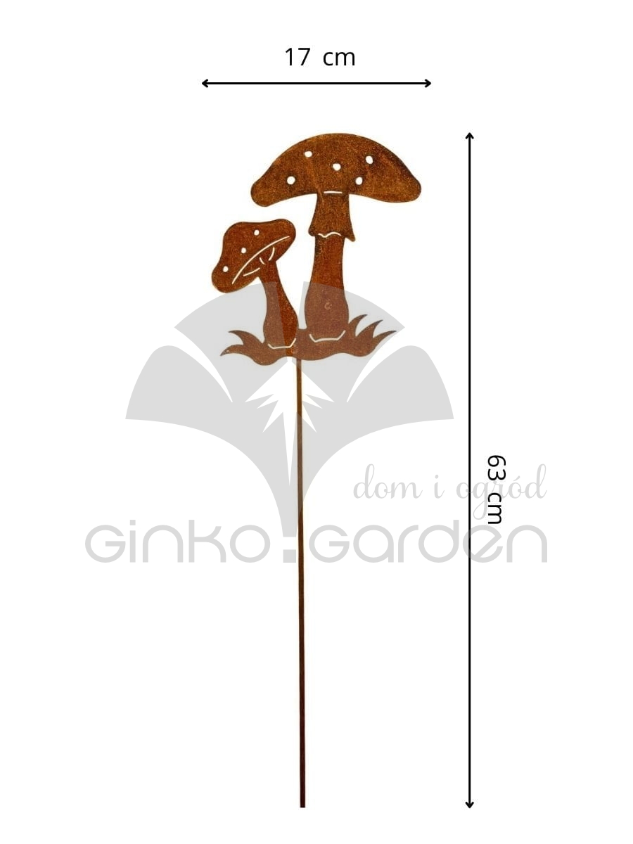 Grzybki na pręcie naturalna rdza - ozdoba do ogrodu