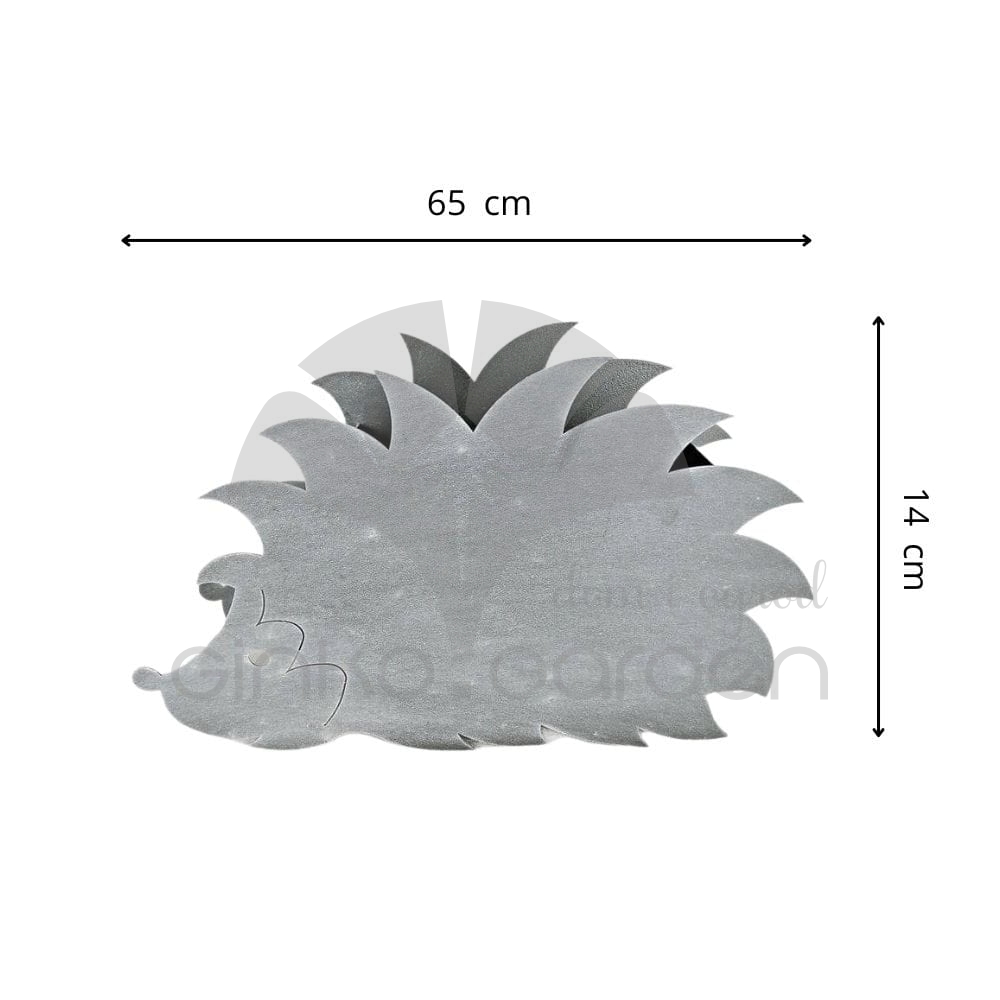 Doniczka ozdobna z metalu w kształcie jeża. Dekoracja do sadzenia roślin wykonana w Polsce, z wysokiej jakości stali pomalowanej proszkowo na kolor antracytowy. Odporna na warunki atmosferyczne.