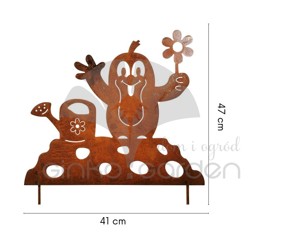 Figurka Kopca kreta z Krecikiem to urocza i humorystyczna dekoracja ogrodowa inspirowana motywem bajkowym. Wykonana w Polsce z solidnej stali, poddana procesowi naturalnego rdzewienia, ta ozdoba doskonale wkomponowuje się w naturalne otoczenie ogrodu, dodając mu nieco zabawnego charakteru.