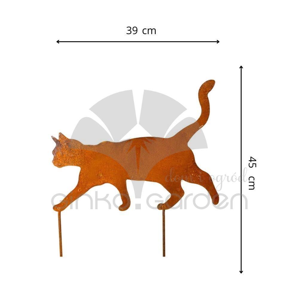 Zachwycająca ozdoba w kształcie kroczącego kota na prętach to propozycja dla osób, które kochają wyjątkowe detale i naturalny urok metalu. Dekoracja ogrodowa została wykonana z solidnej stali i pokryta warstwą naturalnej rdzy, dzięki czemu zyskuje niepowtarzalny, surowy charakter. Wyrazista poza kota nadaje wrażenie dynamiki i lekkości, wspaniale kontrastując z roślinnością w ogrodzie lub na rabacie.