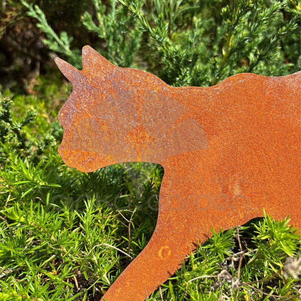 Kot Bonifacy na prętach naturalna rdza - ozdoba do ogrodu