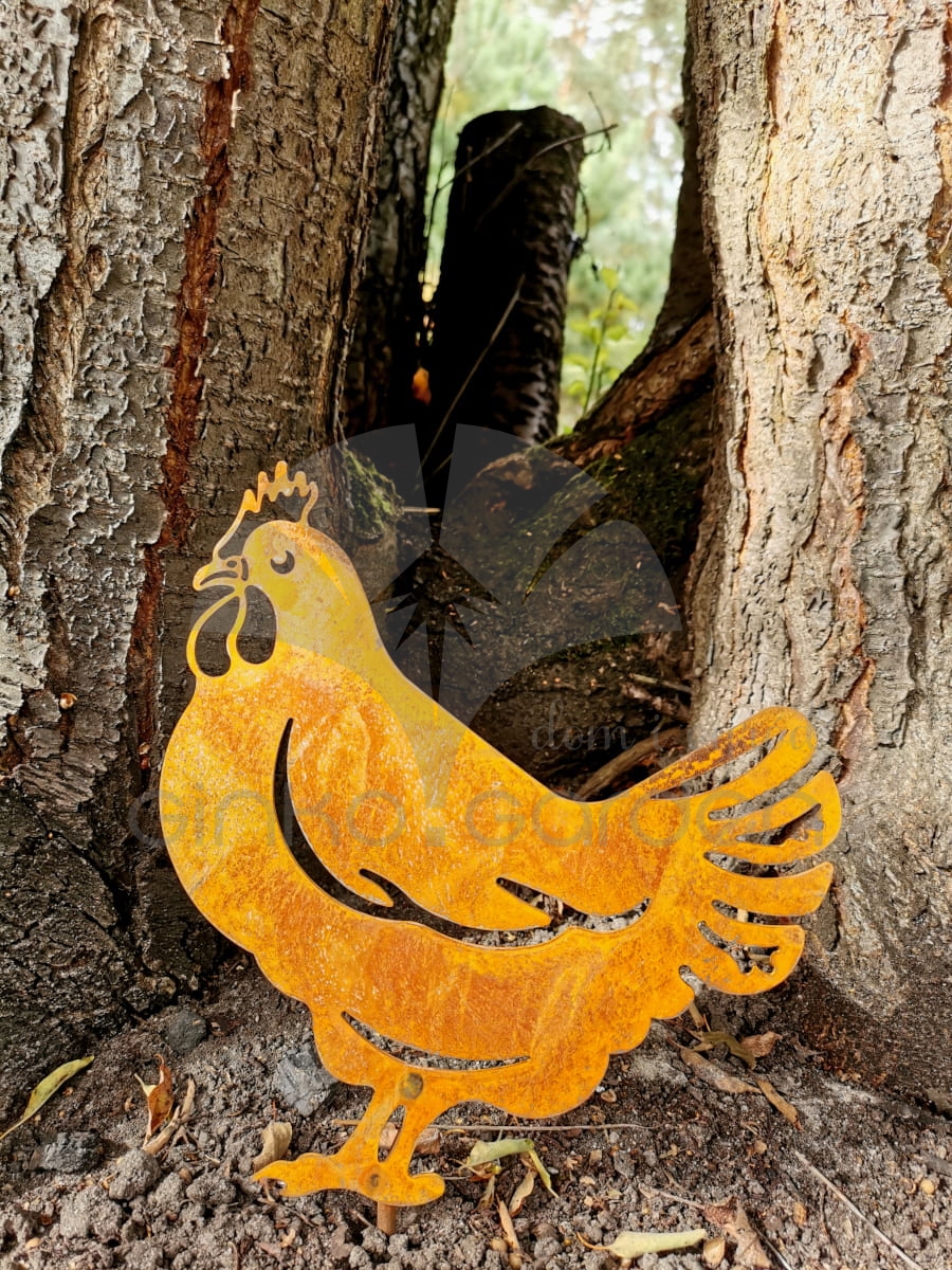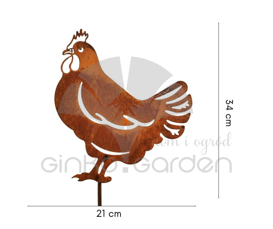 Figurka Kury Liwii do wbicia na pręcie to wyjątkowa dekoracja ogrodowa, która wnosi do przestrzeni urok wiejskiego krajobrazu. Wykonana w Polsce z trwałej stali, kura została poddana procesowi naturalnego rdzewienia, co nadaje jej surowy, rustykalny wygląd.
