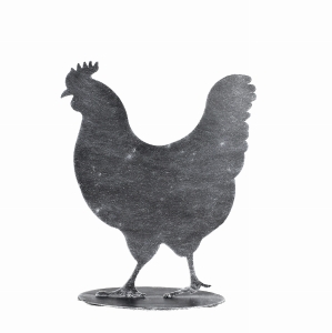 Metalowa figurka ogrodowa na podstawce w kształcie kury. Ozdoba wyprodukowana w Polsce, wykonana z wysokiej jakości stali malowanej proszkowo na odcień antracytu. Odporna na warunki atmosferyczne.