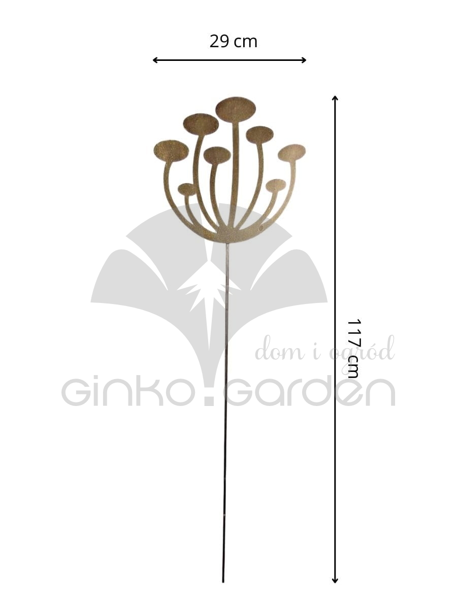 Metalowa dekoracja ogrodowa - kwiat Aneto na pręcie, efekt złotej rdzy