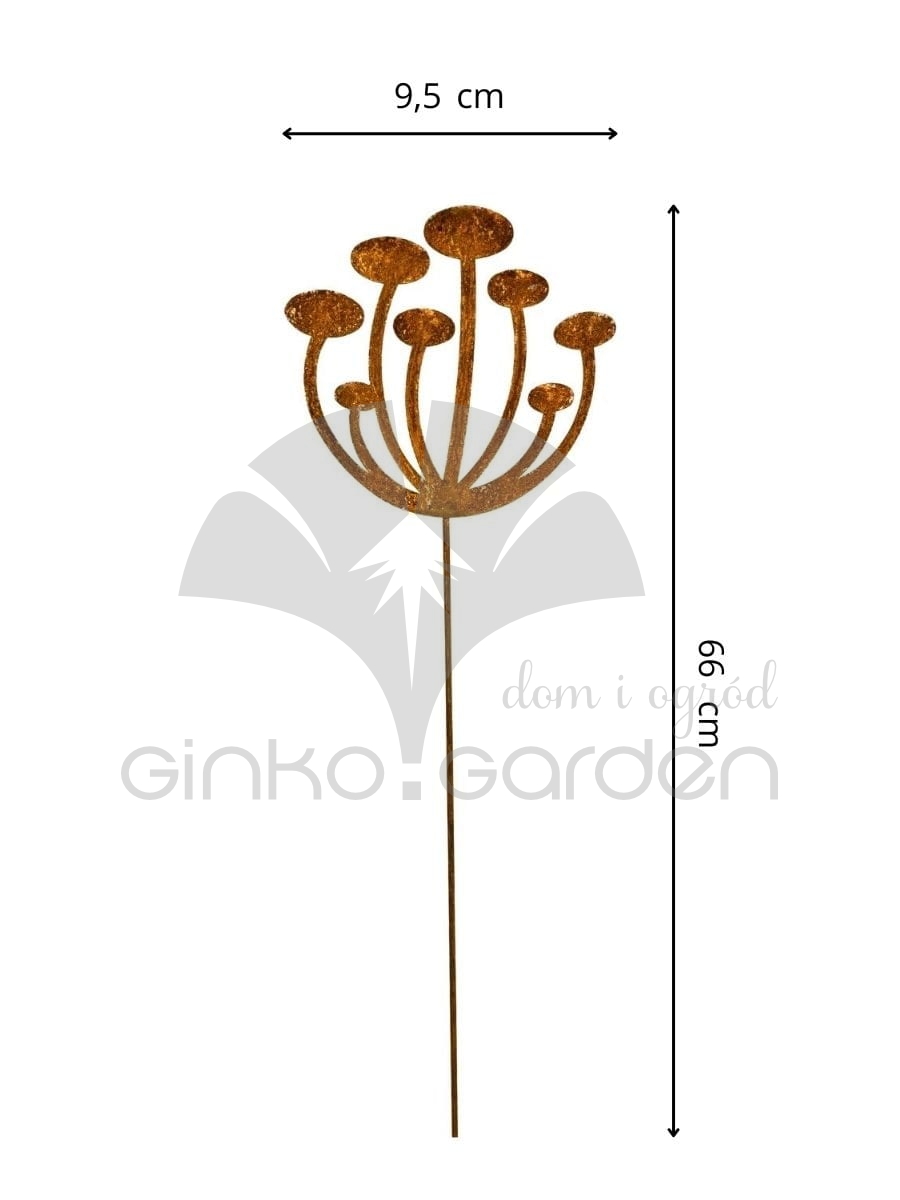 Wprowadź do swojego ogrodu element nowoczesnego designu w rustykalnym wydaniu. Ta ogrodowa dekoracja w kształcie kwiatu zachwyca minimalistyczną linią, a jednocześnie doskonale harmonizuje z zielonym otoczeniem dzięki powierzchni pokrytej naturalną rdzą. Wykonany z metalu kwiat prezentuje się niezwykle efektownie – siedem dynamicznych łodyg zakończonych okrągłymi główkami przyciąga wzrok i nadaje ogrodowi artystyczny sznyt. Rdza nadaje dekoracji ciepły, ziemisty kolor, który pięknie komponuje się z roślinnością i dodaje charakteru każdej aranżacji. Smukły pręt umożliwia łatwe umieszczenie ozdoby w ziemi – idealnie sprawdzi się zarówno w rabatach, przy ścieżkach, jak i w donicach na tarasie czy balkonie. To świetny wybór dla osób, które chcą ożywić przestrzeń ogrodu nietuzinkowym akcentem. Postaw na oryginalność i styl – dodaj rdzawy kwiat do swojej ogrodowej kolekcji i stwórz przestrzeń, która inspiruje!