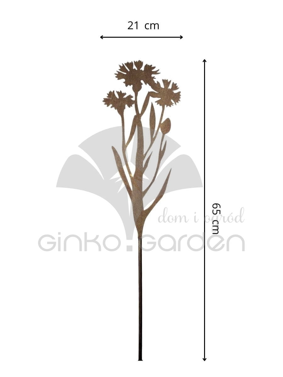 Wprowadź do swojego ogrodu niepowtarzalny urok dzikiej natury dzięki dekoracyjnemu kwiatowi chabra z metalu. Ta precyzyjnie wycięta ozdoba, osadzona na solidnym pręcie, została pomalowana proszkowo na elegancki kolor złotej rdzy, który doskonale kontrastuje z zielenią roślin. Minimalistyczna forma i wyjątkowa trwałość sprawiają, że chaber staje się niezwykłym akcentem zarówno w nowoczesnych, jak i rustykalnych aranżacjach ogrodowych. Chaber w tej odsłonie to coś więcej niż tylko ozdoba — to symbol delikatności i dzikości w harmonii z surowym metalem. Dzięki odporności na warunki atmosferyczne, dekoracja świetnie sprawdzi się przez cały rok, zdobiąc rabaty, trawniki czy donice. Możesz ją wbić bezpośrednio w ziemię lub zestawić z innymi kwiatami z kolekcji, tworząc własną kompozycję. Szlachetny odcień złotej rdzy oraz inspirowany naturą kształt sprawiają, że ta metalowa dekoracja ogrodowa w formie chabra to nie tylko detal, ale pełnoprawny element ogrodowego designu.