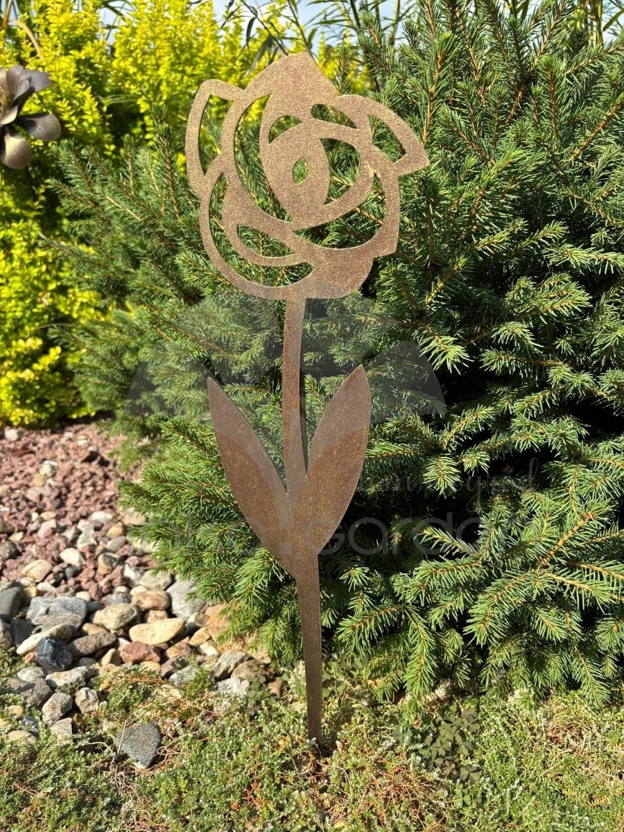 Szukasz subtelnej, a zarazem wyrazistej ozdoby, która podkreśli urok Twojego ogrodu przez cały rok? Nasza metalowa róża na pręcie to doskonały wybór dla miłośników stylowych i trwałych dekoracji. Metalowa róża została wycięta laserowo z dbałością o każdy detal, co nadaje jej lekkości i nowoczesnego charakteru. Kształt kwiatu sprawia, że dekoracja pięknie komponuje się z zielenią, nie dominując jej, ale subtelnie ją uzupełniając. Doskonale prezentuje się zarówno wśród roślin rabatowych, jak i w kompozycjach z trawami ozdobnymi czy przy tarasie. Dekoracja ogrodowa wykonana jest z metalu malowanego proszkowo na głęboki kolor złotej rdzy, co gwarantuje odporność na korozję, deszcz, śnieg i promieniowanie UV. Dzięki temu możesz cieszyć się jej wyglądem przez cały rok – bez konieczności chowania jej na zimę. Ozdobna róża osadzona jest na stabilnym pręcie, który z łatwością umieścisz w ziemi, donicy lub skrzyni ogrodowej. Nadaje się do ekspozycji pojedynczej, jak i jako element większej kompozycji dekoracyjnej – świetnie łączy się z innymi metalowymi kwiatami z naszej kolekcji.