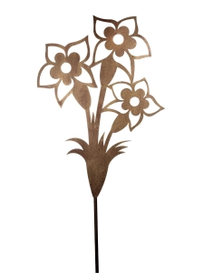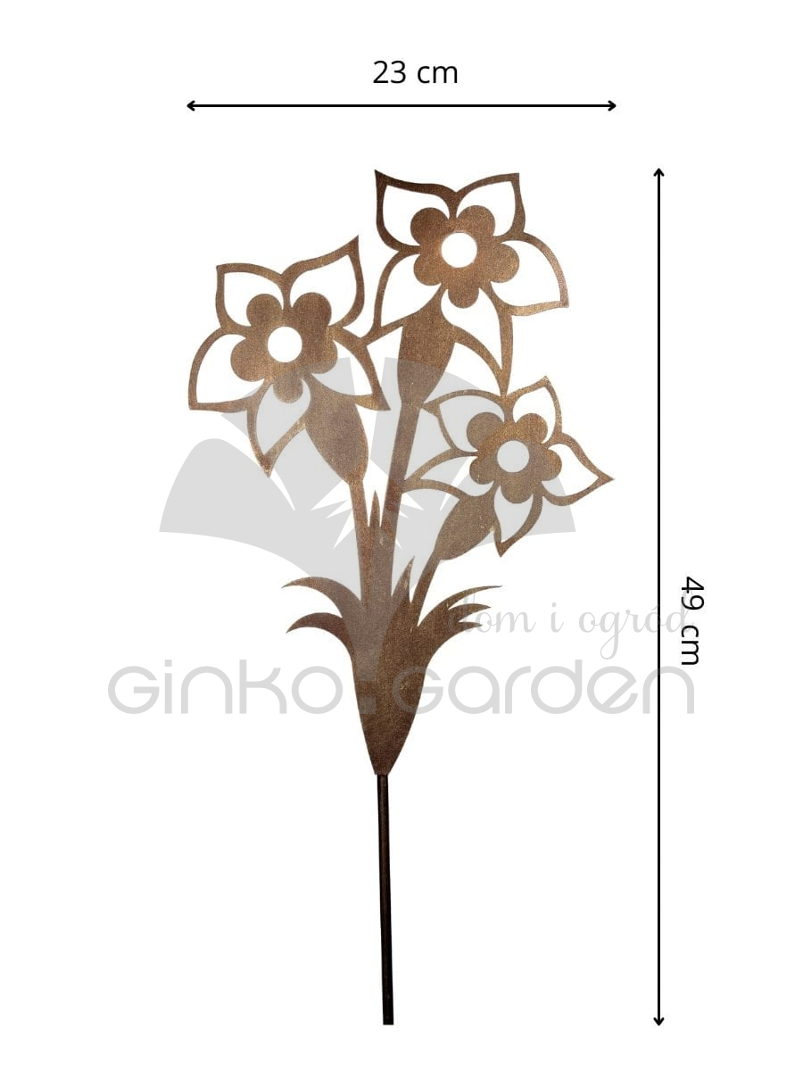 Metalowy kwiat Szarotka - ozdoba na pręcie - efekt złotej rdzy