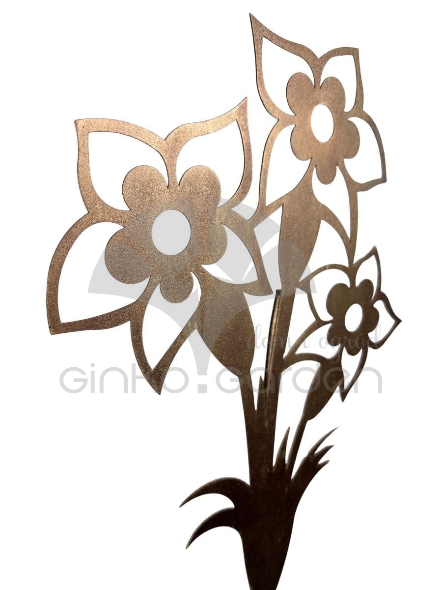 Metalowa dekoracja ogrodowa w kształcie kwiatu szarotki. Malowana proszkowo na kolor złotej rdzy – trwała, elegancka i odporna na warunki atmosferyczne.