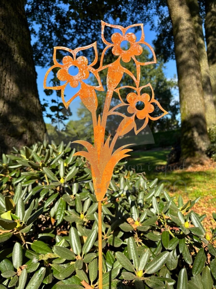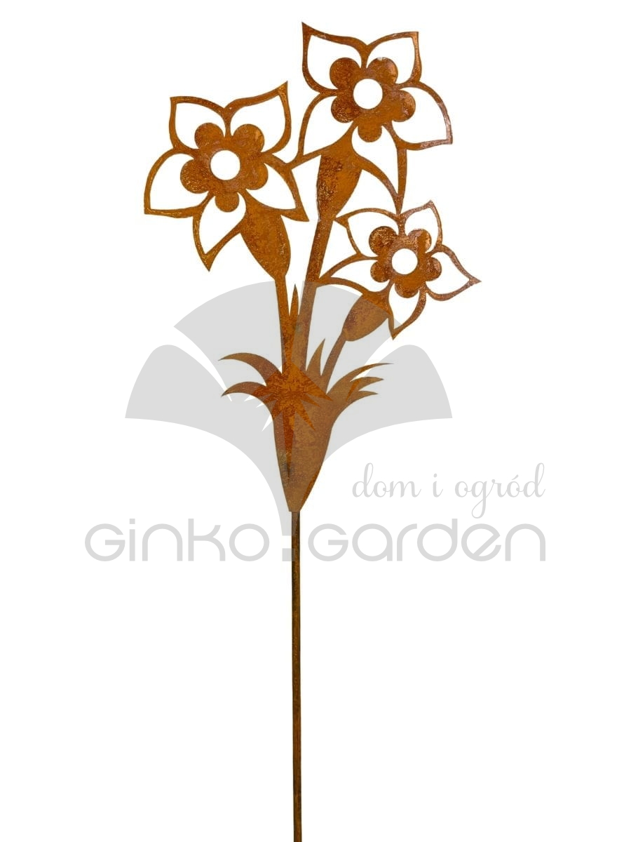 Metalowy kwiat Szarotka - ozdoba na pręcie - naturalna rdza