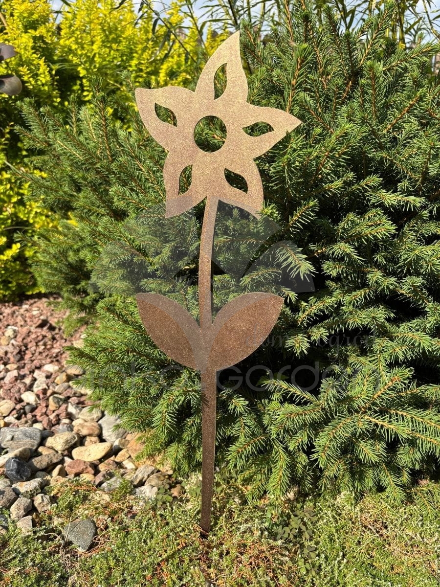 Ta ogrodowa dekoracja metalowa w formie żonkila to minimalistyczna, a zarazem niezwykle urokliwa ozdoba, która doskonale wpisuje się zarówno w nowoczesne, jak i klasyczne aranżacje ogrodów. Wykonana z solidnego metalu i malowana proszkowo na elegancki kolor złotej rdzy, zachwyca surowym wykończeniem i ponadczasowym designem. Osadzony na smukłym pręcie metalowy żonkil wygląda tak, jakby właśnie wyrósł wśród zieleni – jego geometryczna forma i lekka konstrukcja sprawiają, że doskonale komponuje się z naturalnym otoczeniem. Może subtelnie wyłaniać się z rabaty, stać pośród traw ozdobnych, a nawet ozdobić donice na tarasie czy balkonie. Dzięki odporności na warunki atmosferyczne i trwałemu wykonaniu, ta dekoracja ogrodowa cieszy oko przez cały rok – nie więdnie, nie traci koloru i nie wymaga pielęgnacji. To idealna propozycja dla miłośników stylowych dodatków do ogrodu, którzy cenią sobie trwałość, prostotę i funkcjonalność.