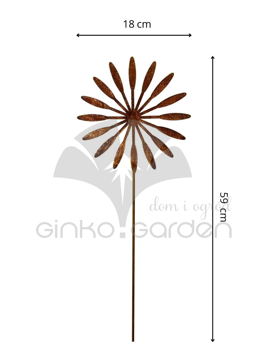 Metalowa dekoracja ogrodowa – rdzawy kwiat dmuchawca na pręcie 59 cm