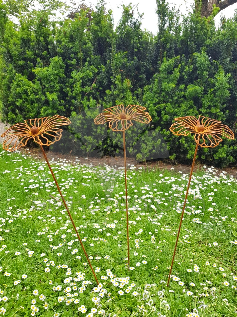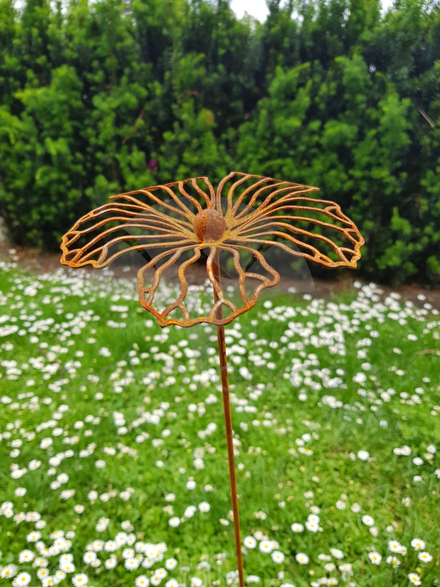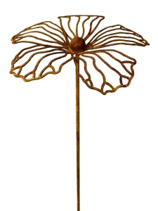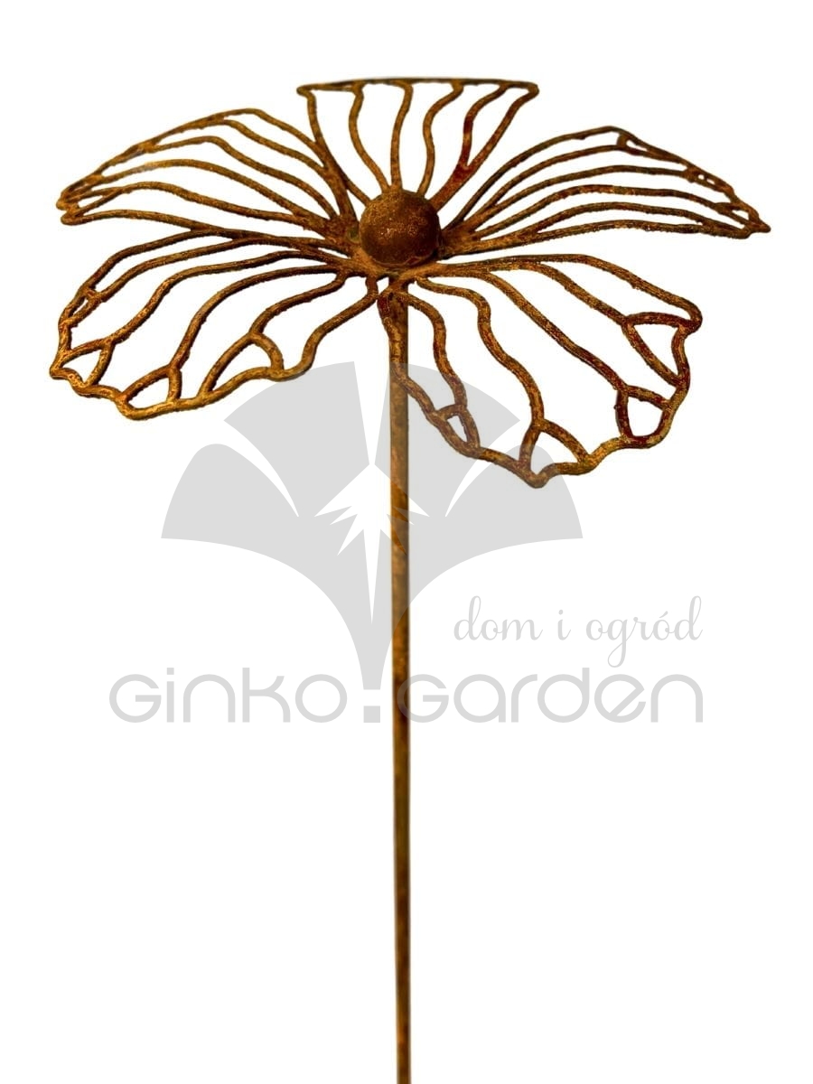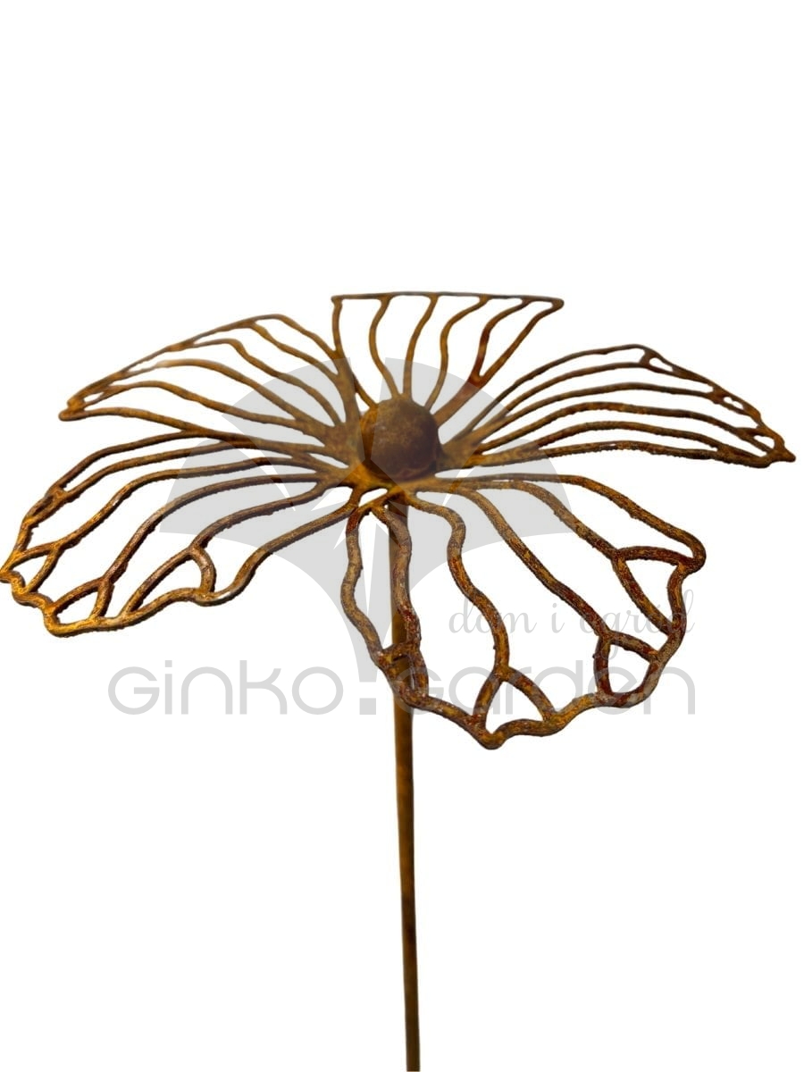 Kwiat hibiskusa 3D - dekoracja z metalu na pręcie naturalna rdza
