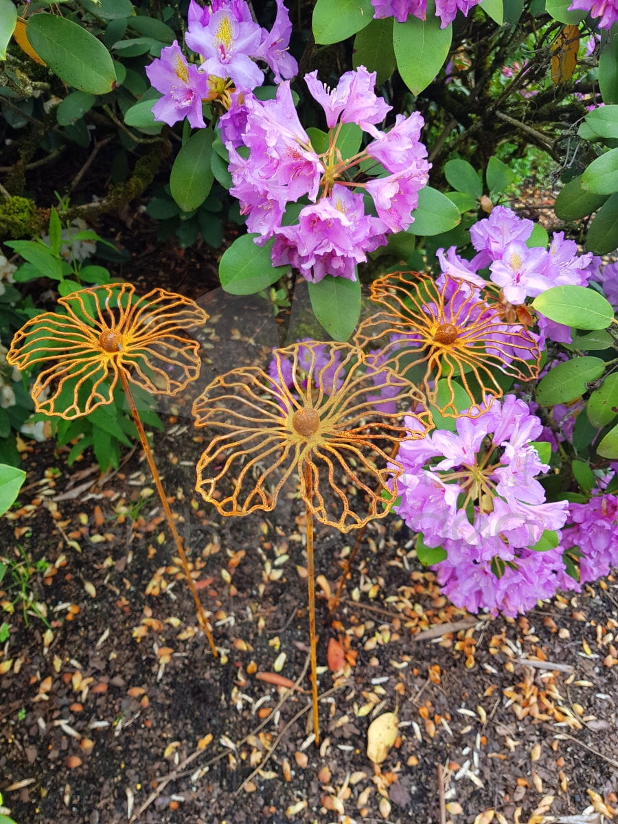 Kwiat hibiskusa 3D to wyjątkowa metalowa ozdoba, która wnosi do ogrodu artystyczny klimat i egzotyczną nutę. Dzięki przestrzennie uformowanym płatkom i ażurowej konstrukcji, dekoracja wygląda lekko i naturalnie, a jednocześnie wyróżnia się oryginalnym designem. Wykonana z metalu i wykończona naturalną rdzą, doskonale wpisuje się w ogrodowe aranżacje w stylu rustykalnym, vintage czy industrialnym.