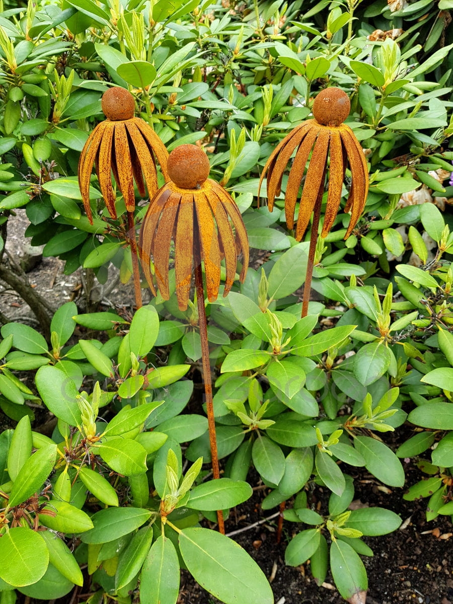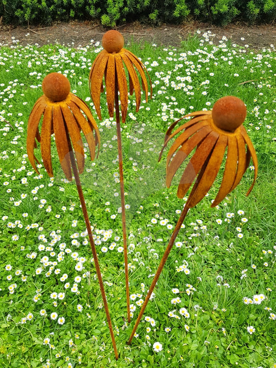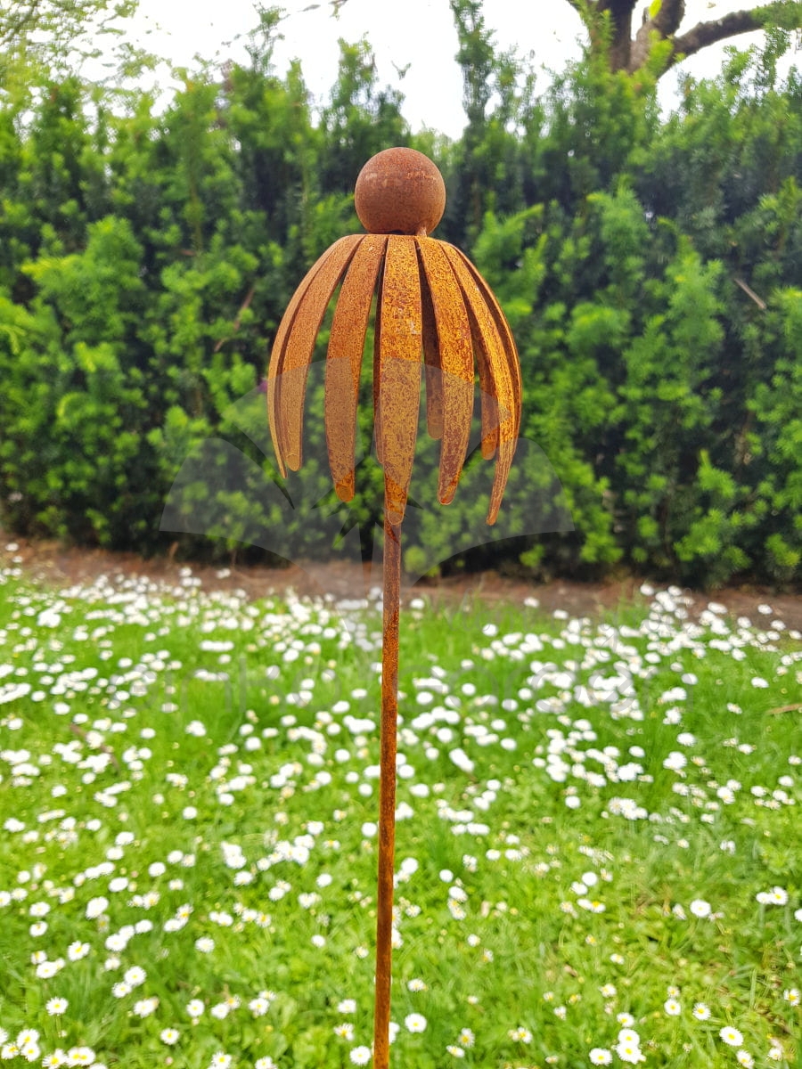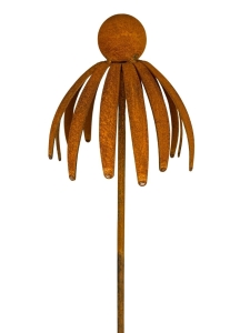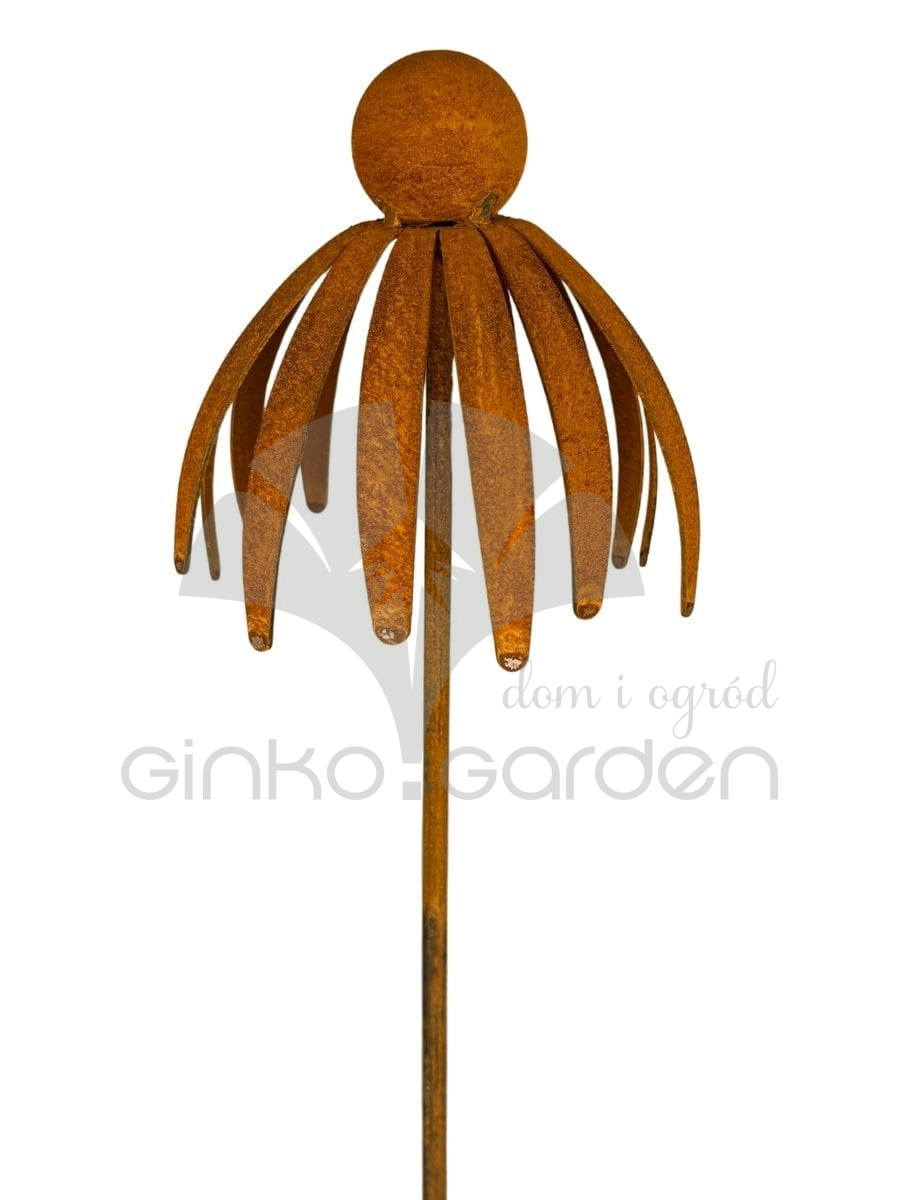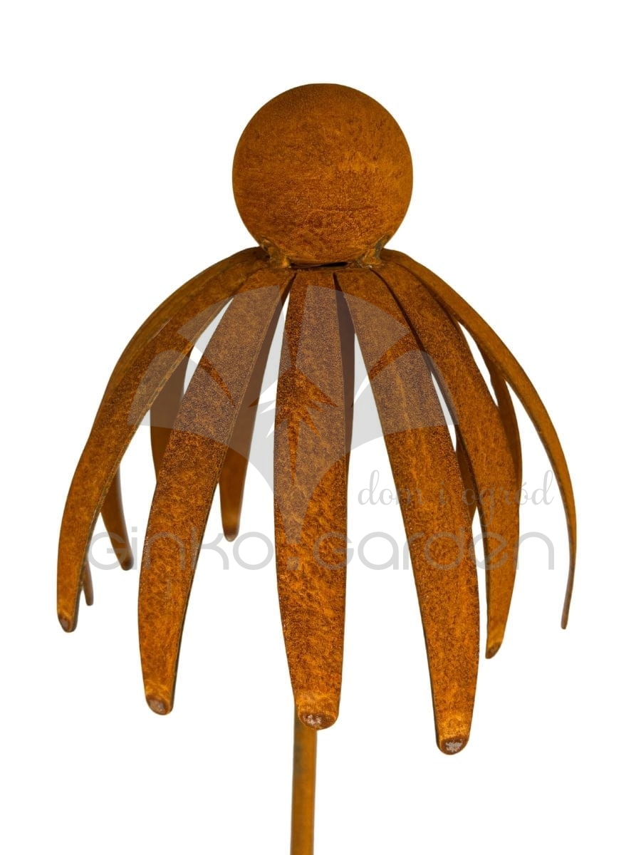 Kwiat jeżówki 3D - dekoracja z metalu na pręcie naturalna rdza