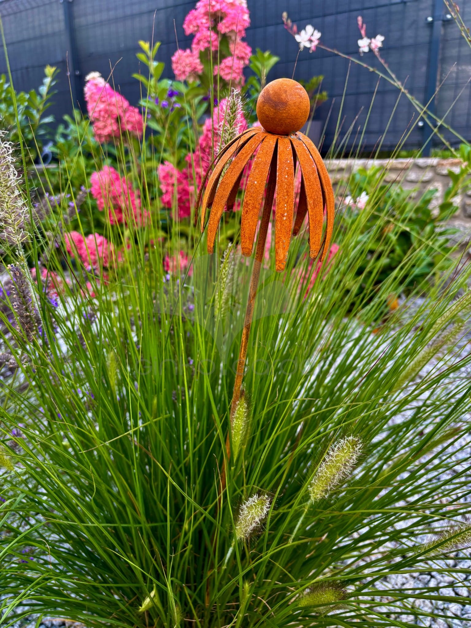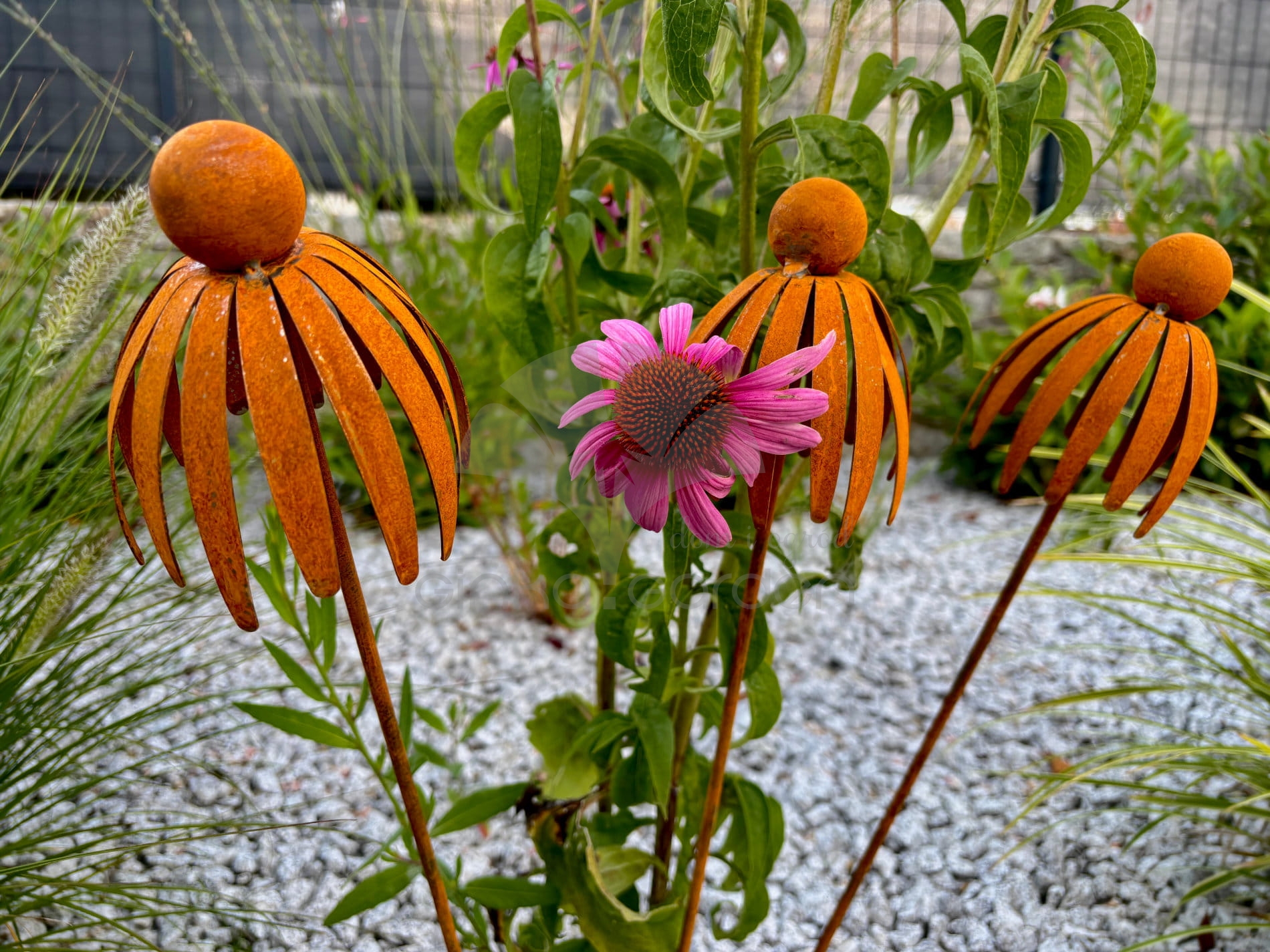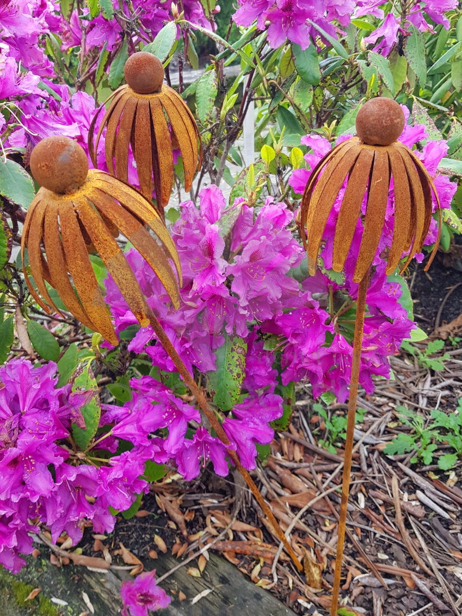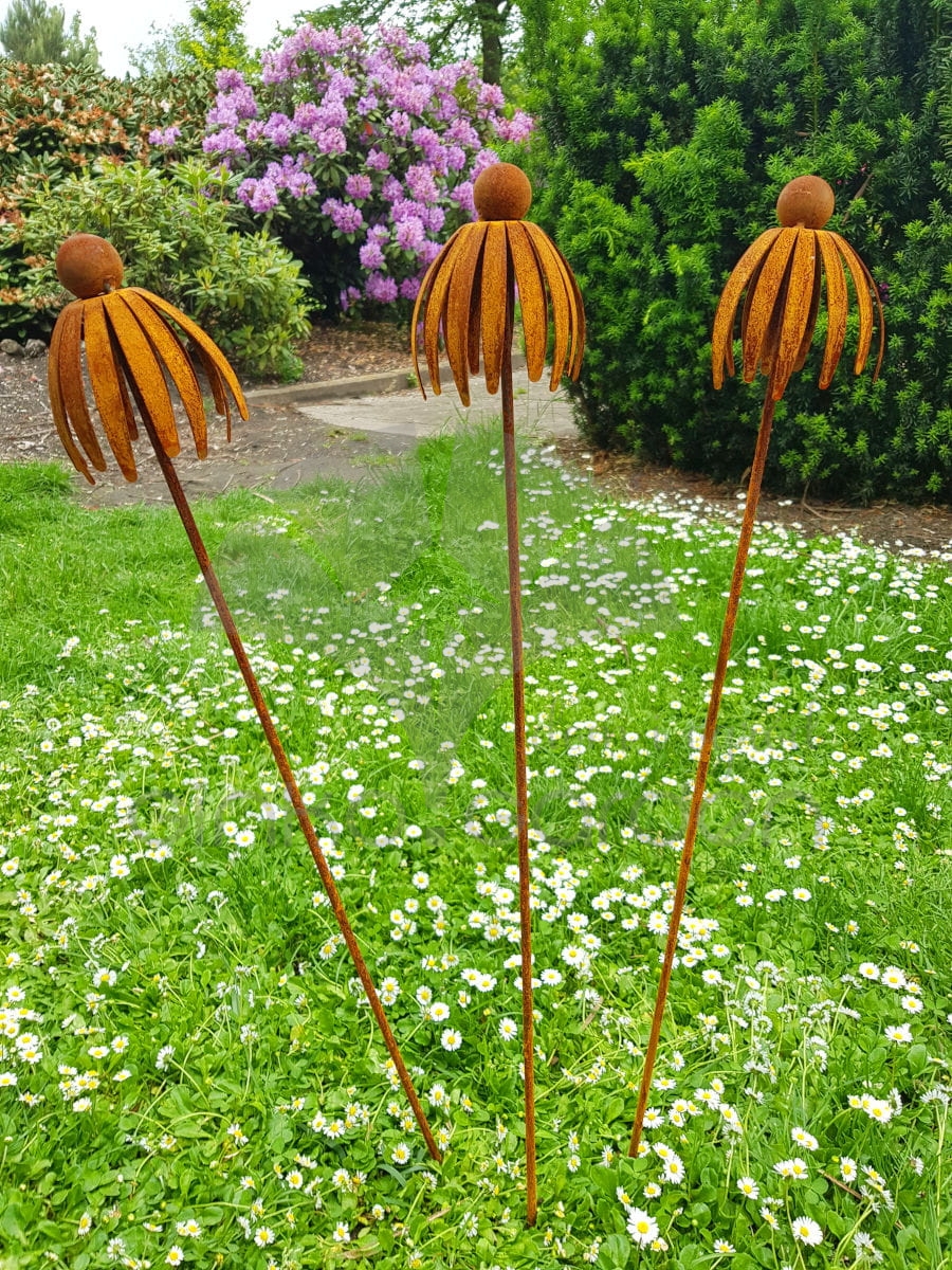 Kwiat jeżówki 3D - dekoracja z metalu na pręcie naturalna rdza