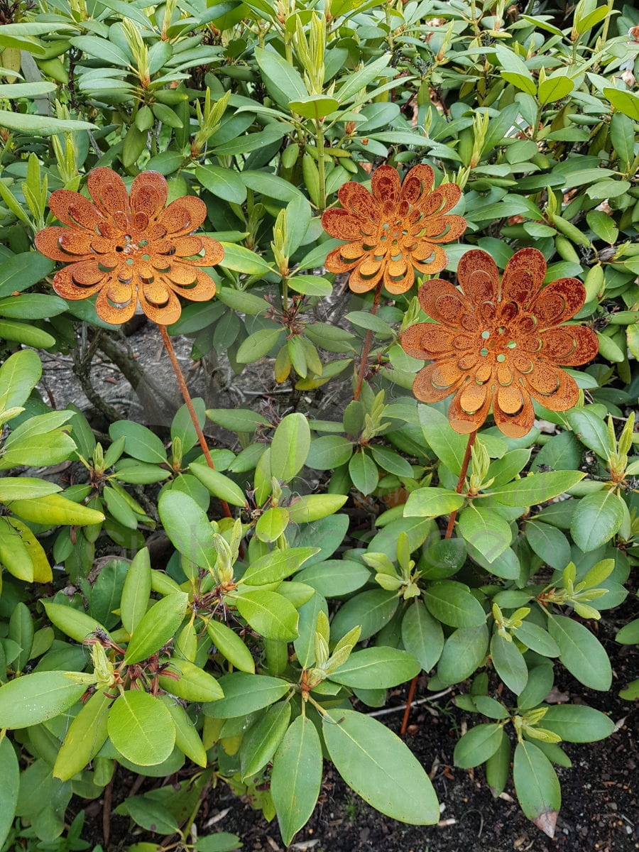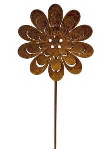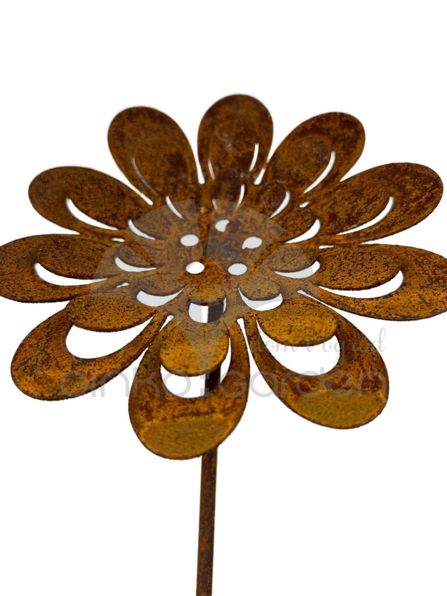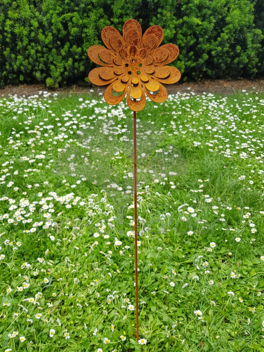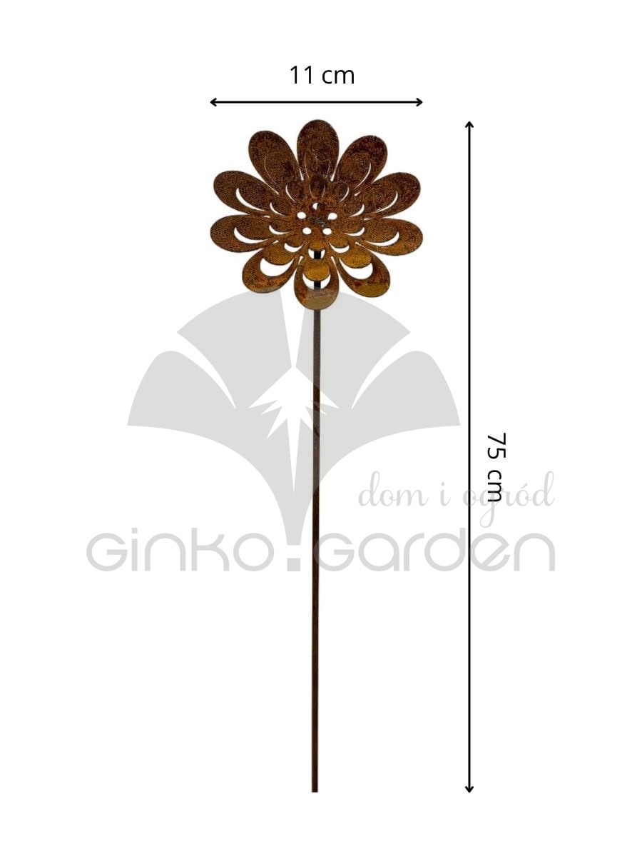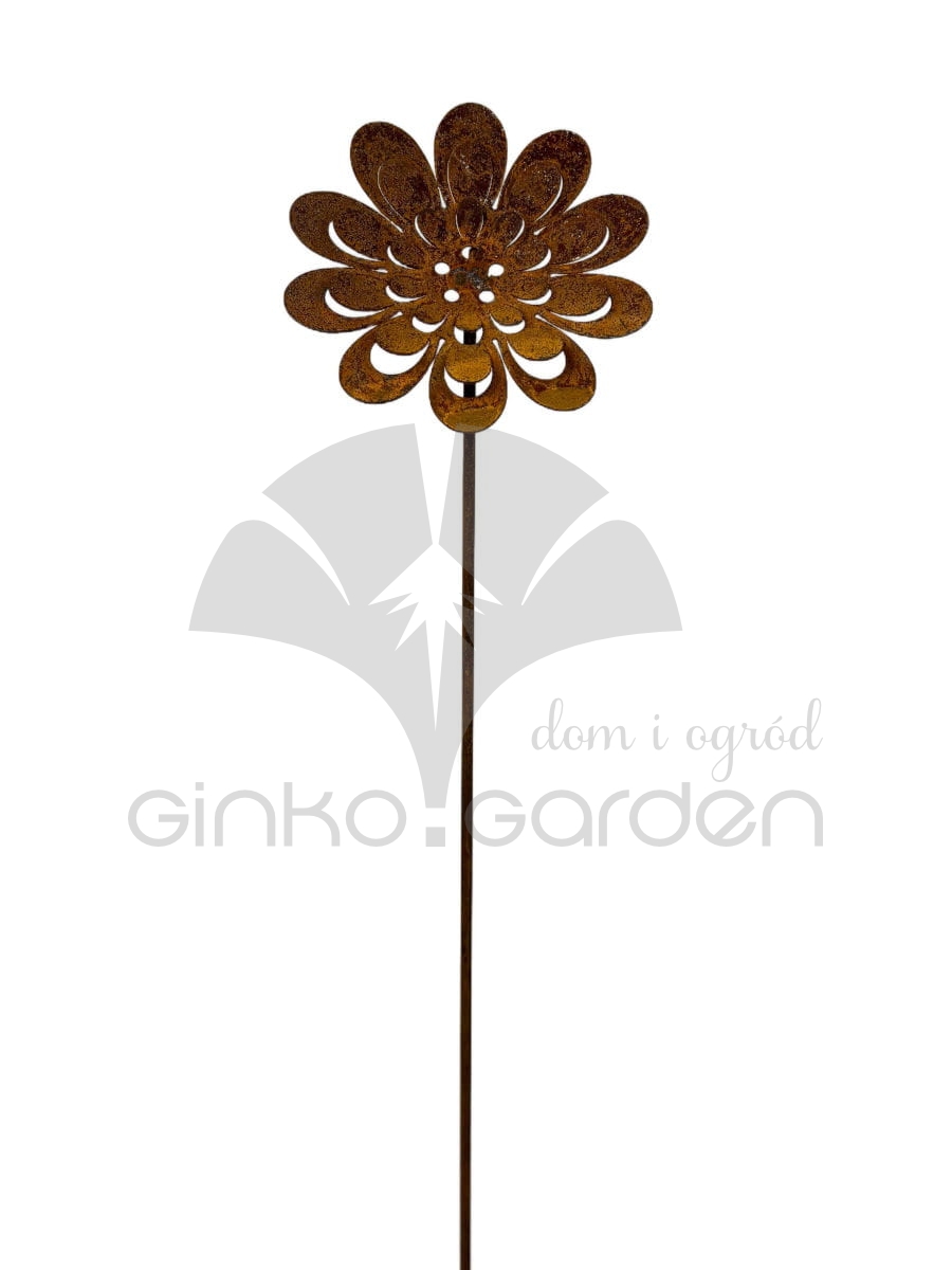 Trójwymiarowy kwiat zachwyca detalem – misternie wycięte płatki nadają lekkości i estetyki, a mocna konstrukcja na pręcie umożliwia łatwe wbicie w ziemię, donicę lub rabatę. Idealnie komponuje się z naturalnym otoczeniem – w ogrodzie, przy ścieżkach, na tarasie lub wśród innych dekoracji w stylu rustykalnym.