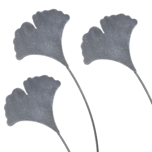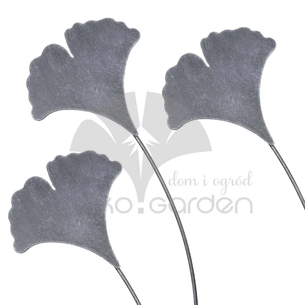 Zestaw 3 dekoracyjnych liści miłorzębu na metalowych prętach. Elegancki antracytowy kolor i subtelna estetyka sprawiają, że doskonale prezentują się w każdej ogrodowej aranżacji.