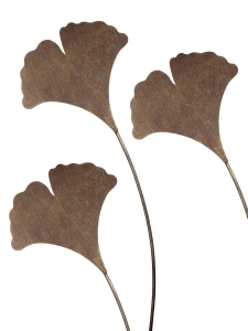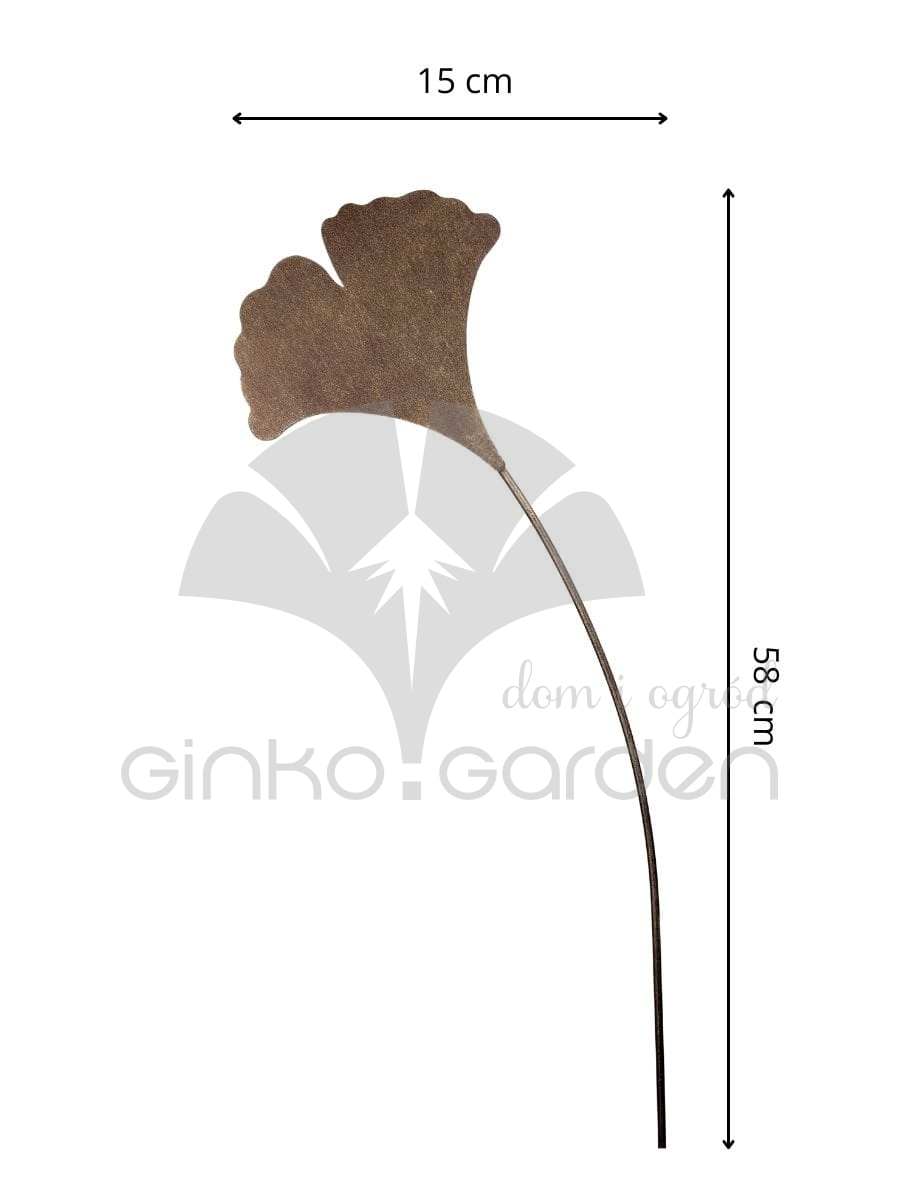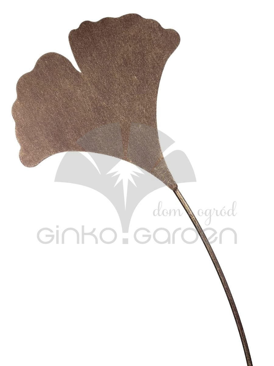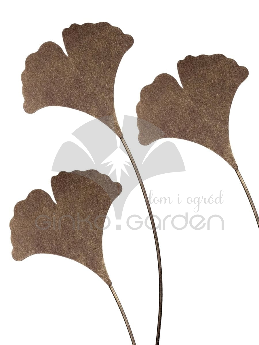 Zestaw 3 dekoracyjnych liści miłorzębu na metalowych prętach. Elegancki kolor złotej rdzy i subtelna estetyka sprawiają, że doskonale prezentują się w każdej ogrodowej aranżacji.