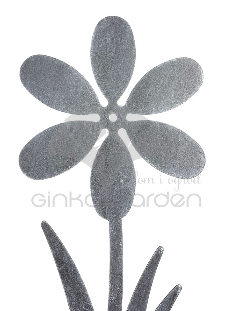 Dekoracja ogrodowa z metalu w kształcie kwiatu z trawą. Wykonana z wysokiej jakości stali i malowana proszkowo na kolor antracytowy - jest odporna na warunki atmosferyczne.