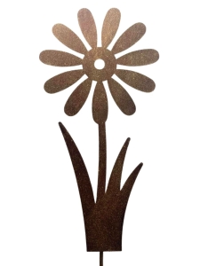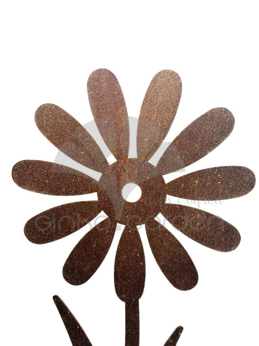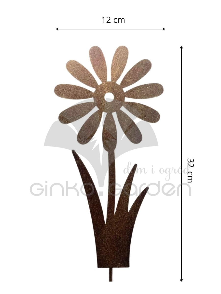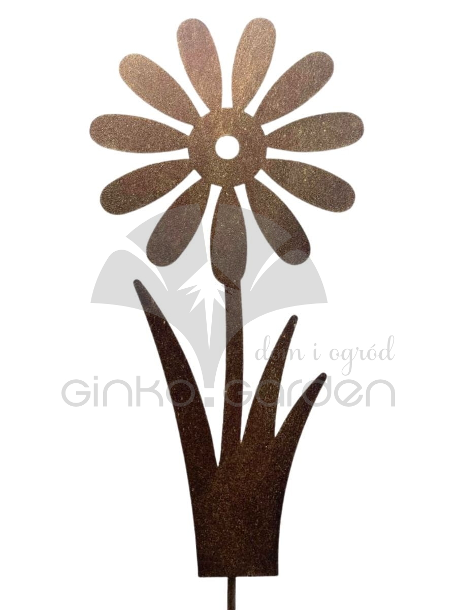 Metalowa dekoracja ogrodowa – kwiatek Margaretka z trawą – efekt złotej rdzy