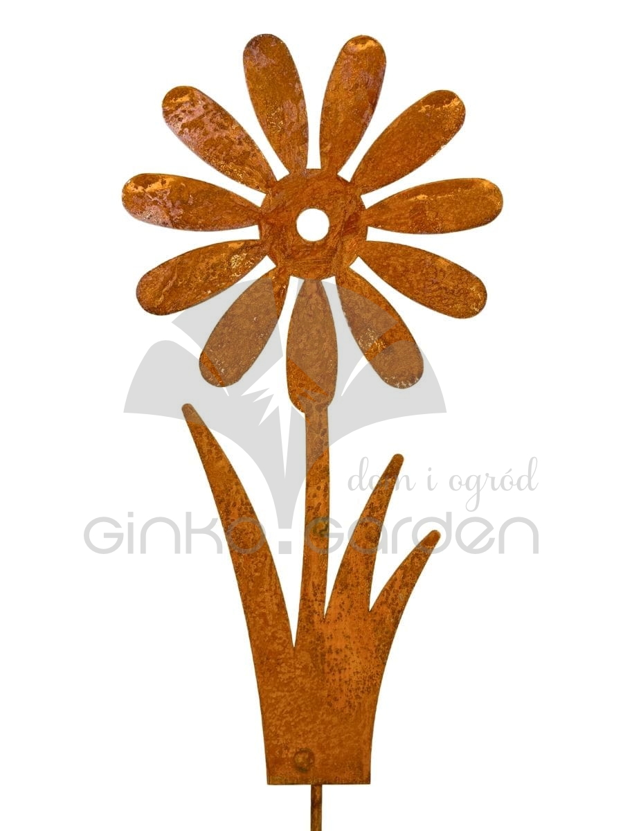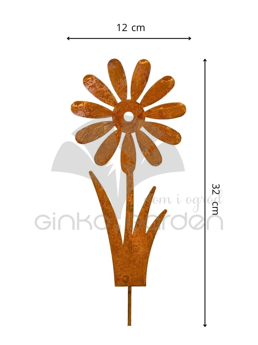 Metalowy kwiatek Margaretka z trawą naturalna rdza - ozdoba do ogrodu