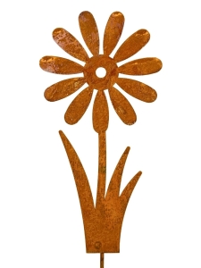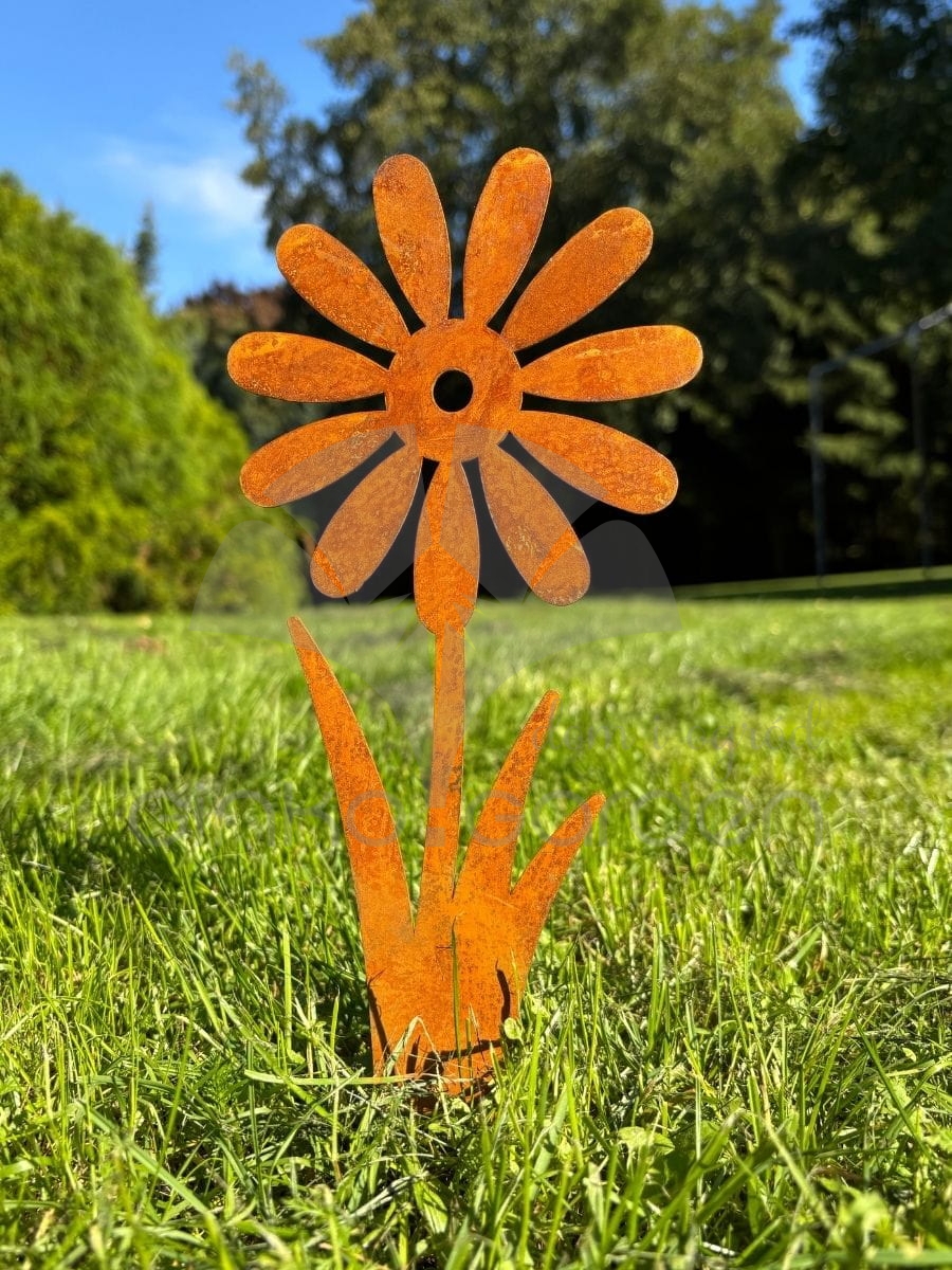 Metalowa dekoracja ogrodowa – kwiatek Margaretka z trawą – naturalna rdza