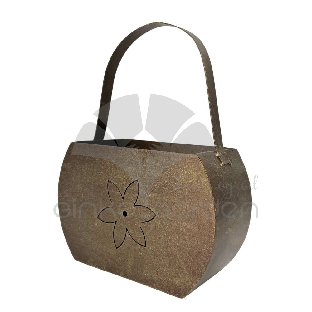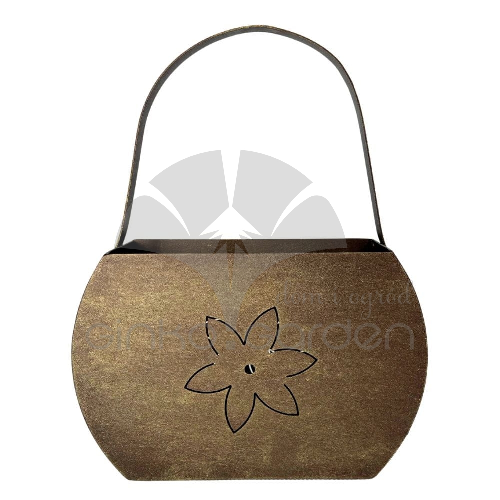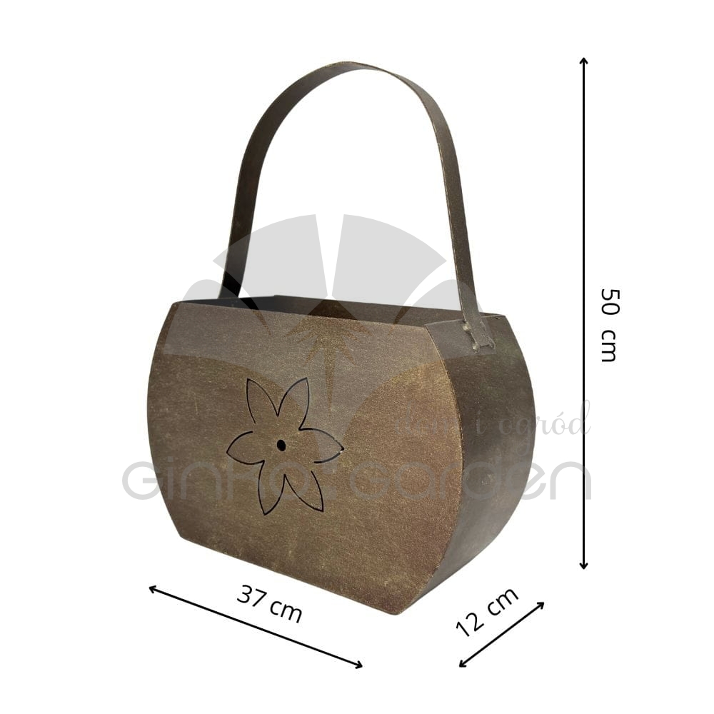 Metalowa doniczka Torebka w kolorze złotej rdzy - wyjątkowa dekoracja do obsadzenia