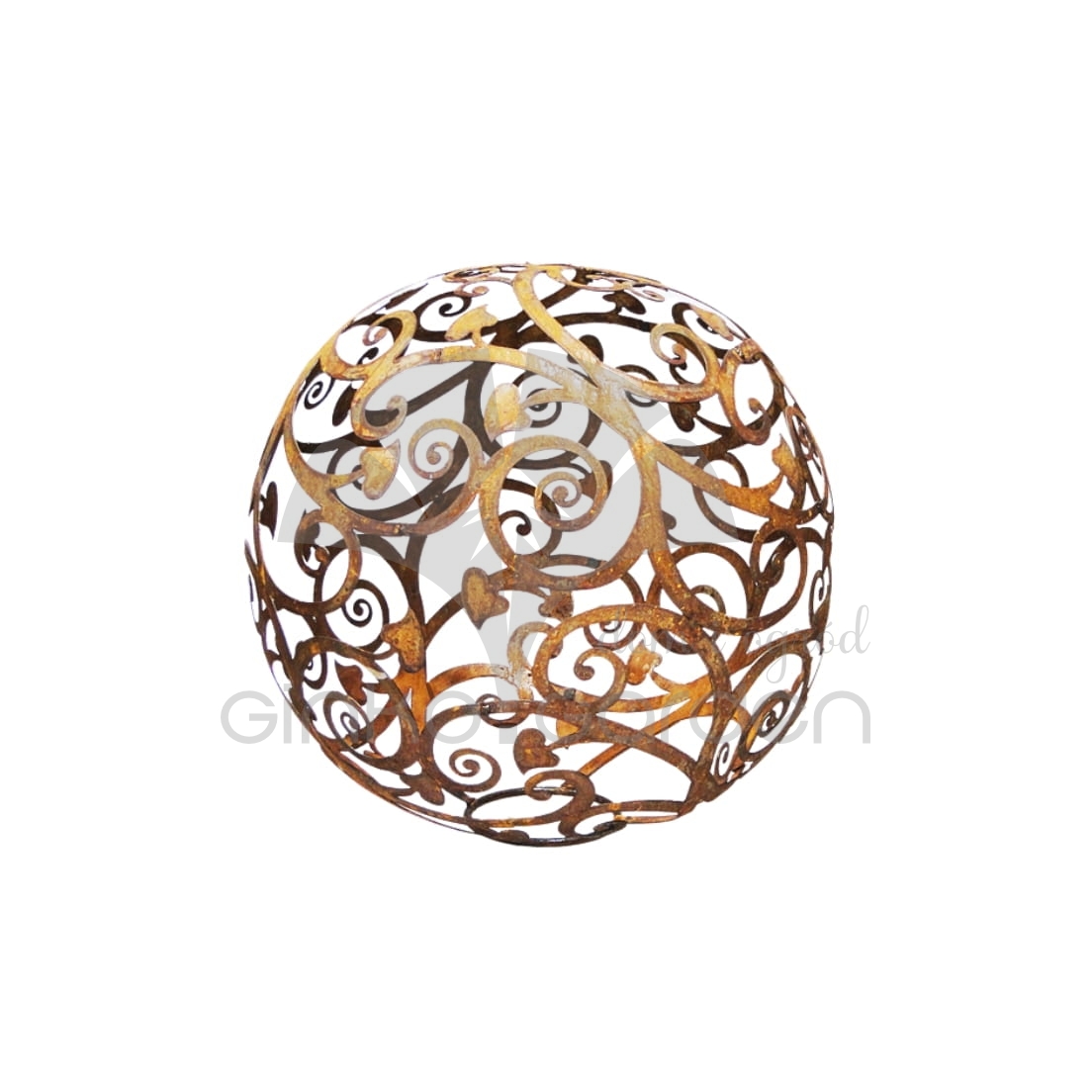 Ozdobny lampion ogrodowy w kształcie kuli do podświetlenia Arabeska w kolorze naturalnej rdzy.