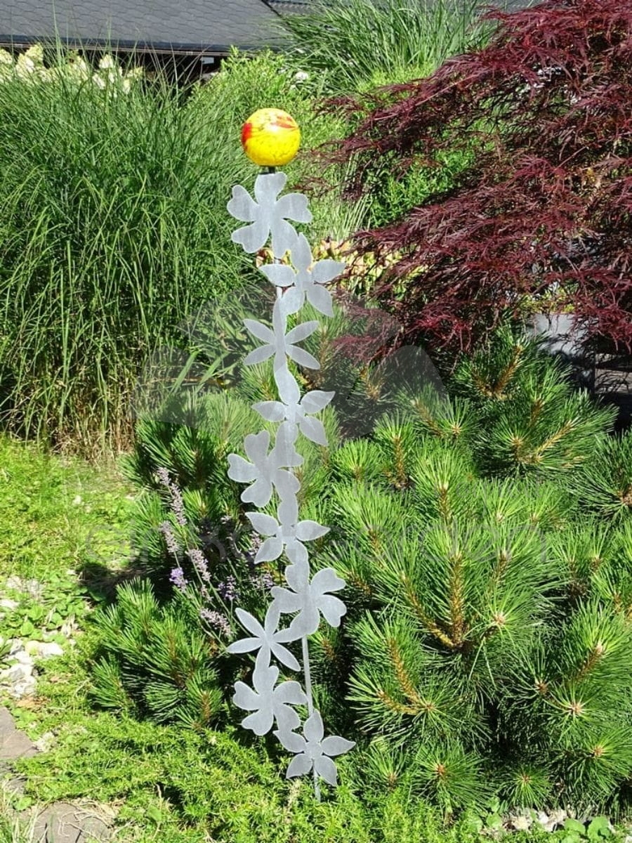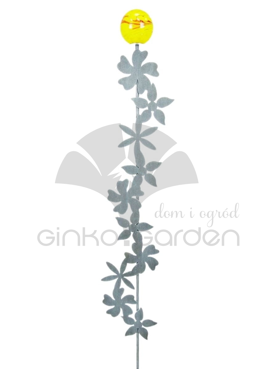 Metalowa podpora ogrodowa – Kwiaty na pręcie z kulą szklaną