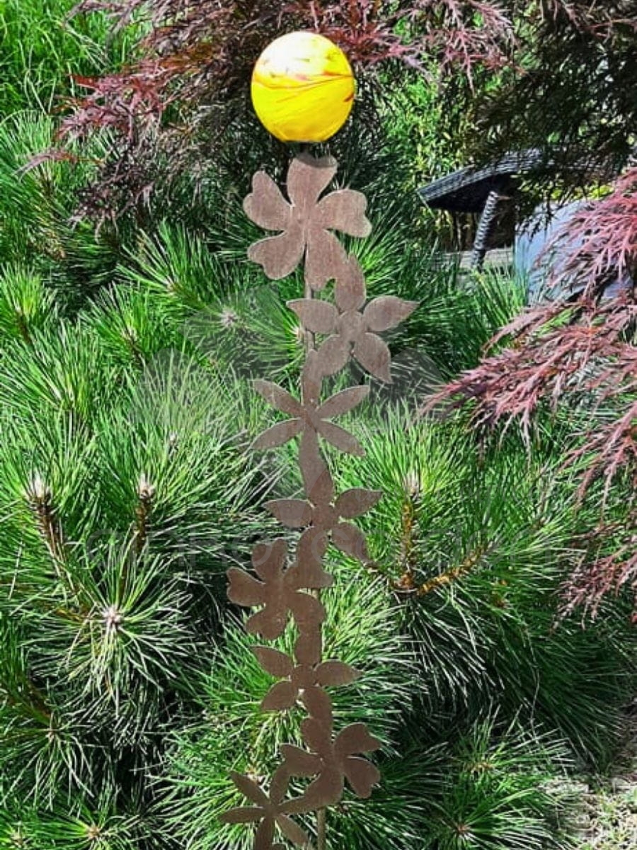 Metalowa podpora ogrodowa – Kwiaty na pręcie z kulą szklaną