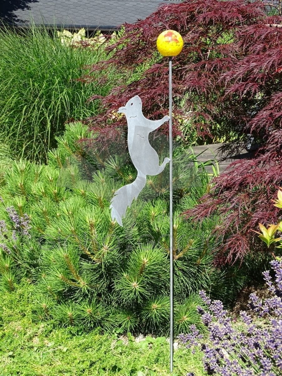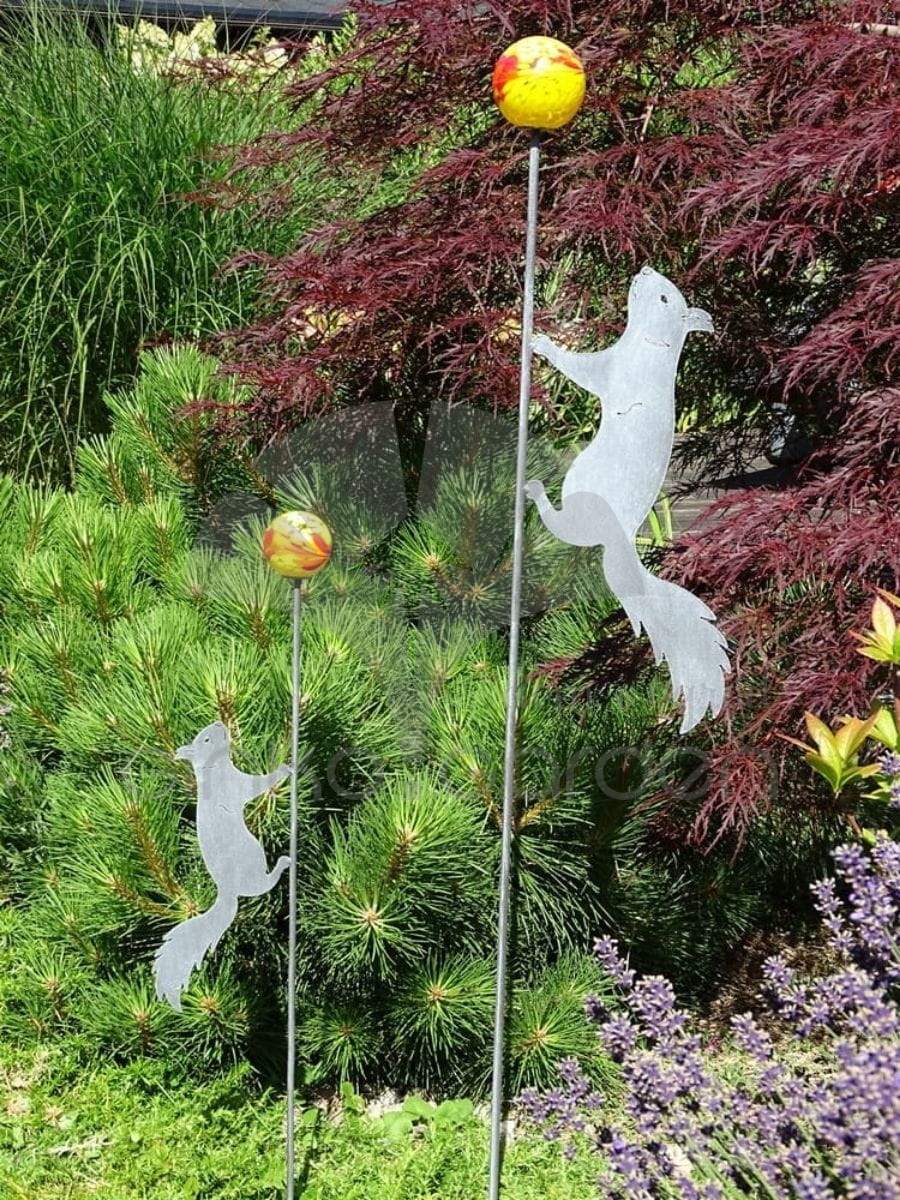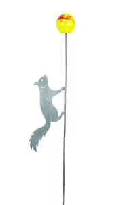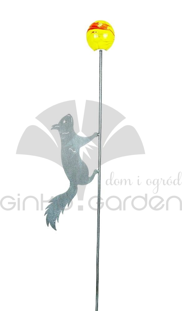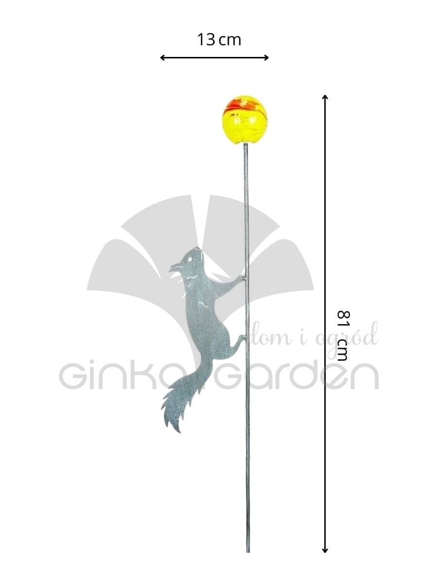 Metalowa podpora ogrodowa – Wiewiórka na pręcie z kulą szklaną
