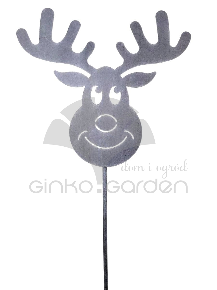 Metalowy Renifer Rudolf na pręcie w kolorze antracytowym - zimowa biżuteria ogrodowa