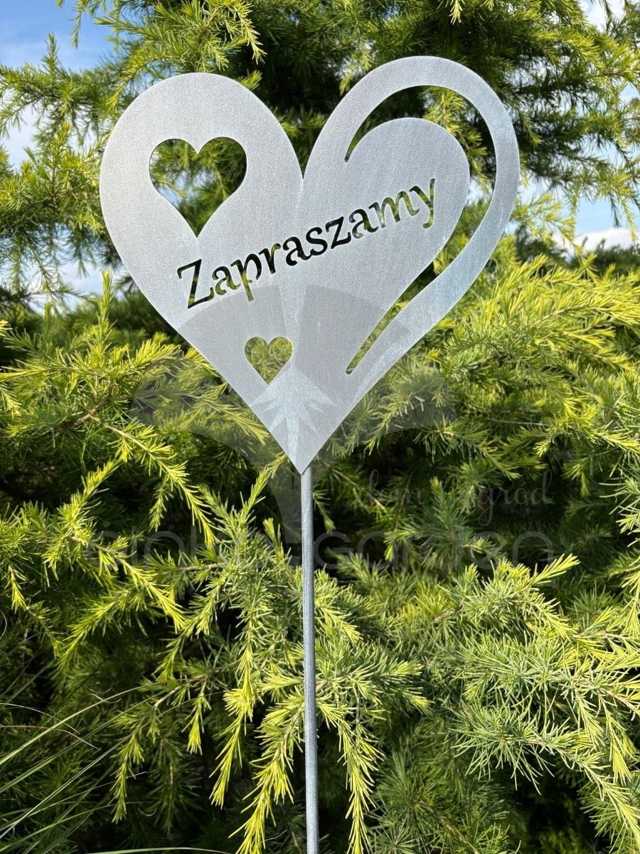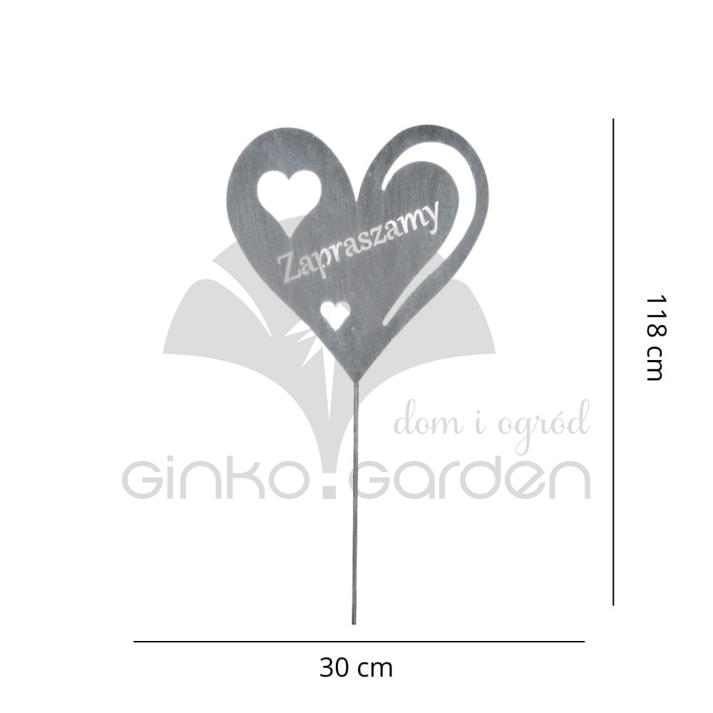 Metalowa dekoracja na pręcie - Serce z napisem "Zapraszamy", które z pewnością będzie oryginalną ozdobą Twojego ogrodu! Pomalowana proszkowo na kolor antracytowy.