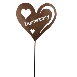 Serce z napisem Zapraszamy na pręcie efekt złotej rdzy