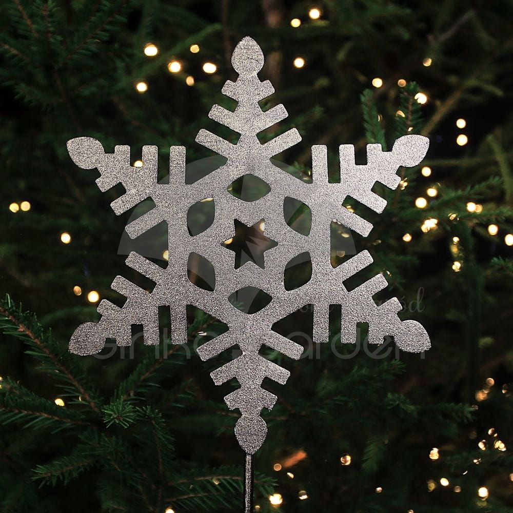 Metalowa Śnieżynka Blanka na pręcie w kolorze złotej rdzy - zimowa biżuteria ogrodowa
