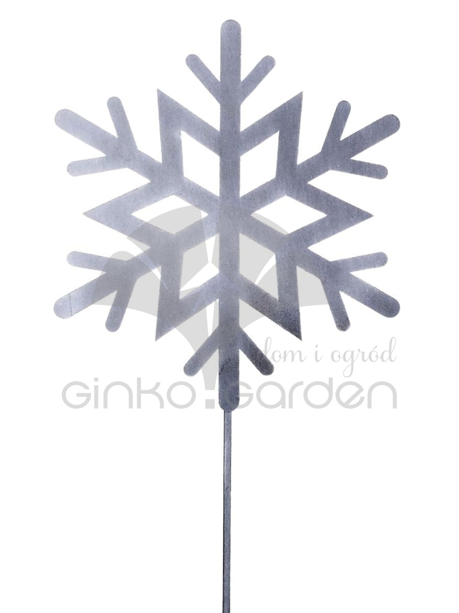 Metalowa dekoracja na Boże Narodzenie - śnieżynka na pręcie do ogrodu. Ozdoba świąteczna wykonana w Polsce z wysokiej jakości stali, pomalowanej proszkowo na kolor antracytowy. Odporna na warunki atmosferyczne.